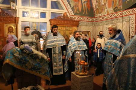 В канун праздника, 13 октября, в нашем храме было совершено Всенощное бдение с Акафистом Пресвятой Богородице.