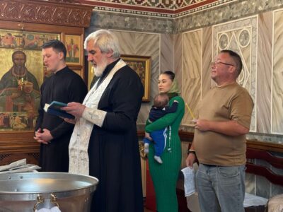 26 января 2025 года в храме святого праведного Иоанна Кронштадтского на Кронштадтской площади протоиерей Михаил Подолей совершил Таинство Крещения над младенцем Артемием, который проживает вместе с мамой в Отделении социальной реабилитации «Маленькая мама» кризисного центра помощи женщинам. Таинство было совершено по просьбе мамы.