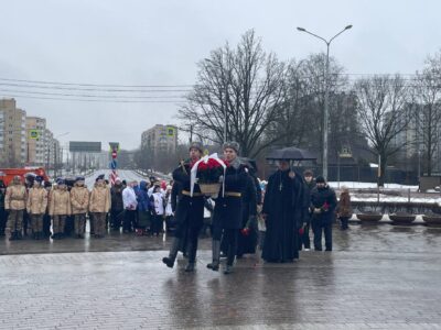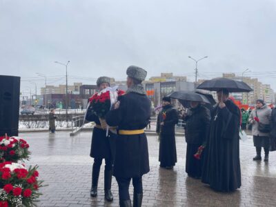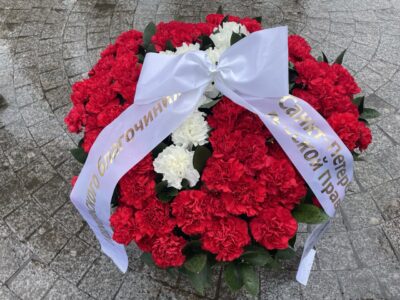 В этот же день, по приглашению администрации Красносельского района Санкт-Петербурга, священнослужители храмов Красносельского благочиния приняли участие в торжественно-траурной церемонии возложения цветов на Триумфальной арке «Арка Победы» в г. Красное Село.