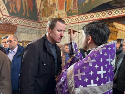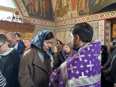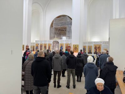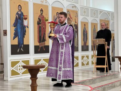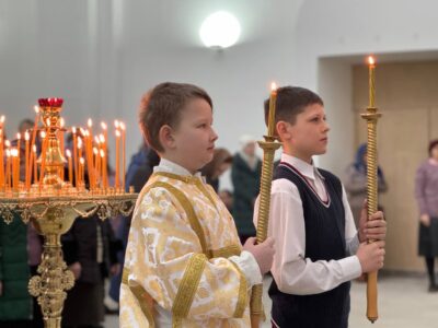 Всенощное бдение накануне вечером в храме святого праведного Иоанна Кронштадтского на Кронштадтской площади совершил иерей Константин Подолей в сослужении клира.