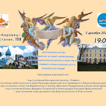 27 ноября настоятель храма святого праведного Иоанна Кронштадтского, благочинный Красносельского благочиннического округа, протоиерей Михаил Подолей, по приглашению директора СПб ГБУ «Центр культуры и досуга «Кировец» Гайдук Дианы Михайловны, посетил праздничное мероприятие, посвященное Дню матери. В зале … читать полностью
