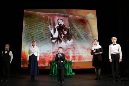 Учащиеся воскресной школы храма со своими родителями в сопровождении духовной музыки представили наставления из дневника святого «Моя жизнь во Христе» о богослужении в Православной Церкви, о молитве – ее значении и предназначении, о святых угодниках Божиих, которые оставили «духовное наследие, искусство покаяния и спасения — Церкви Православной, сложив в нее, как в верную сокровищницу, все свое разумение, свое слово, свое усердие, свое искусство, свои опыты», о том, что «христианину православному нужна сильная поддержка свыше от Бога и от святых воинов Христовых, победивших врагов спасения силою благодати Христовой».