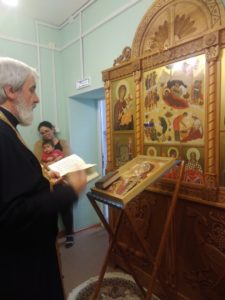 Отец Михаил обратил внимание присутствующих на то, чтобы они ценили, что в доме, в котором они сейчас живут, устроена часовенька, куда они могут приходить помолиться, приложиться к иконочкам, попросить помощи и благословения у Господа для себя и для своих деток. Здесь же имеются экземпляры Нового Завета, молитвословы и другие христианские православные книги. Батюшка рассказал о событии Рождества Христова на главной иконе иконостаса, сказав, что его смысл должен быть очень близок и понятен для мам.