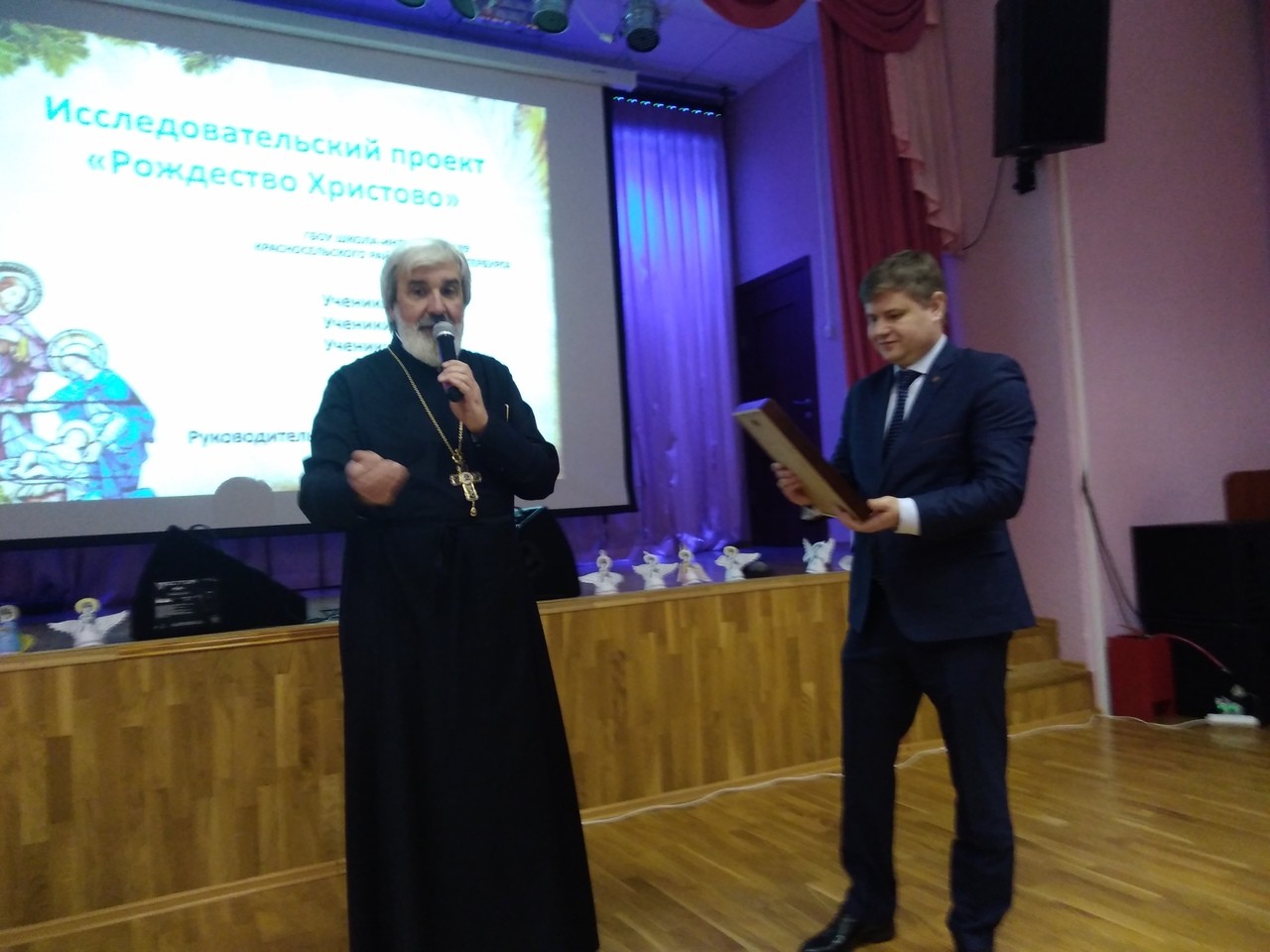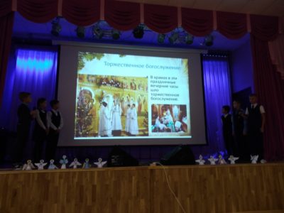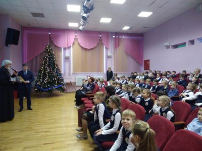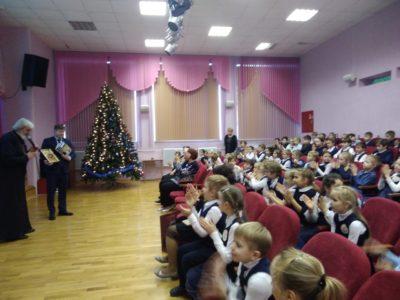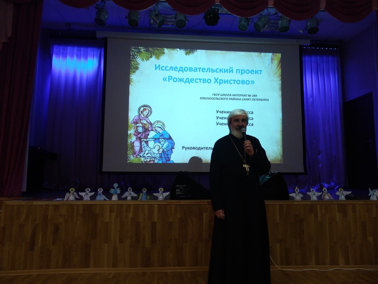 Праздничное мероприятие прошло в день памяти святителя Николая Чудотворца. Со словами приветствия к детям обратились директор школы-интерната № 289 в Дудергофе Сергей Николаевич Карягин и благочинный Красносельского округа протоиерей Михаил Подолей, который преподнес в дар школе икону Рождества Христова и экземпляры Закона Божия.
