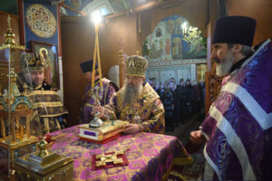 Его Высокопреосвященству сослужили секретарь епархиального управления протоиерей Сергий Куксевич, настоятель храма протоиерей Михаил Подолей с клиром, председатель финансово-хозяйственного отдела епархии протоиерей Сергий Судаков.