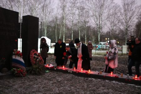 На братские могилы были возложены цветы и свечи. В торжественно-траурной церемонии приняли участие представители районной администрации, Законодательного Собрания Санкт-Петербурга, благочиннического округа, ветераны Великой Отечественной войны, жители блокадного города, учащиеся и педагоги образовательных учреждений, жители и гости Санкт-Петербурга.