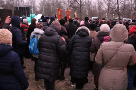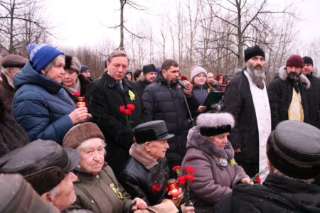 Приветственное слово благочинного: «Дорогие братья и сестры, мы с вами находимся на братских захоронениях. Здесь почивают останки доблестных защитников нашего города, нашей страны. Преподобный Ефрем Сирин говорит: «Кто благодушествует и проявляет мужество в опасностях, если и умрет, то умрет как доблестный, а кто останется в живых, тот пребывает в славе». Мужество с христианской точки зрения есть не что иное, как твердость в истине. Наши защитники умирали за правду, и они это знали. Поэтому никакие вражеские злокозненности не могли поколебать их стойкости, не могли поколебать их веру в то, что они стоят за правду, что отстаивают нашу честь и наше достоинство. Вечная им память и блаженный покой».