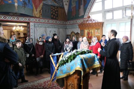 Была проведена экскурсия с рассказом о храме и празднуемом событии. Все присутствующие помолились перед иконой Сретения Господня за молебном, который совершил протоиерей Михаил Подолей в сослужении диаконов Константина Подолея и Сергия Ганина. Некоторые дети и взрослые присутствовали за Божественной литургией. Затем все собрались за праздничным угощением, где состоялась беседа отца Михаила с ребятами, которые задали ему интересующие их вопросы. Для детей и учителей с родителями была проведена викторина, содержащая главные события истории праздника Сретения Господня. Среди вопросов были и такие, как, например, «Всенощное бдение» С. В. Рахманинова, стихотворение «Сретенье» И. Бродского, празднуемый 15 февраля Международный день православной молодежи. Победителю викторины был подарен экземпляр Закона Божия протоиерея Серафима Слободского с иллюстрациями.