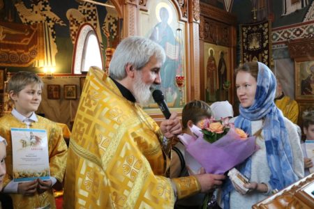 Также в этот день настоятель храма протоиерей Михаил Подолей вручил дипломы учащимся воскресной школы, которые принимали участие в Общероссийской олимпиаде по Основам православной культуры «Русь Святая, храни веру православную». Олимпиада проводится по благословению Святейшего Патриарха Московского и всея Руси Кирилла Православным Свято-Тихоновским гуманитарным университетом при участии Министерства просвещения РФ и Синодального отдела религиозного образования и катехизации Русской Православной Церкви. В этом году содержанием заданий стали темы, посвященные 75-летию Великой Победы, святому благоверному великому князю Александру Невскому, православию в Америке, истории Соловецкого монастыря.