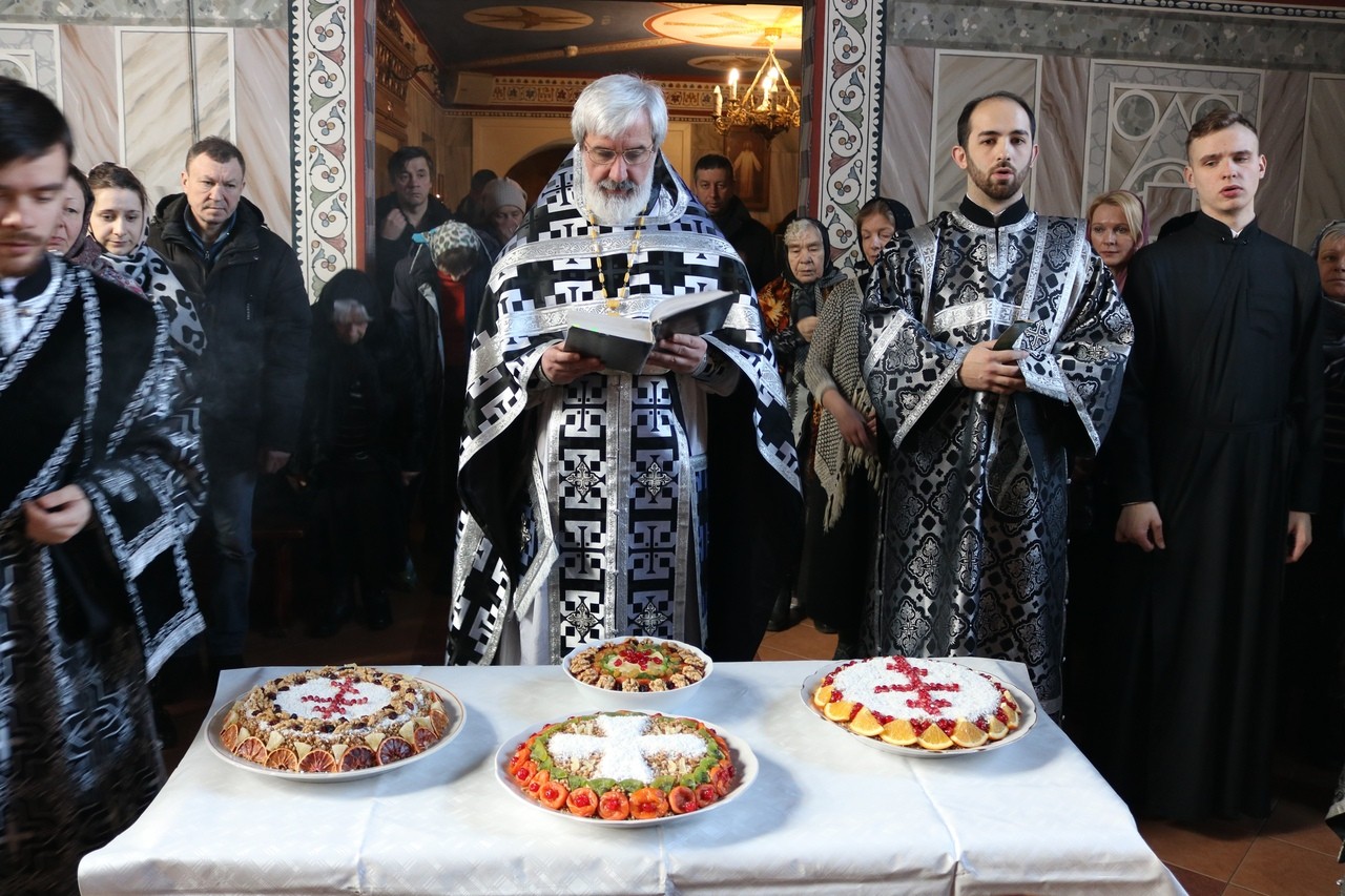 Сегодня, в пятницу первой седмицы Великого поста, после утрени, часов и изобразительных настоятель храма протоиерей Михаил Подолей в сослужении клира совершил Литургию Преждеосвященных Даров. По заамвонной молитве молились за молебном святому великомученику Феодору Тирону, было совершено благословление колива.