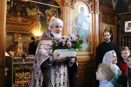 Историческая справка: Определением Его Высокопреосвященства Высокопреосвященнейшего митрополита Санкт-Петербургского и Ладожского Варсонофия настоятель храма святого праведного Иоанна Кронштадтского на Кронштадтской площади протоиерей Михаил Подолей был назначен на должность благочинного Красносельского благочиннического округа Санкт-Петербургской епархии с 7 марта 2015 года. 8 марта, в Неделю 2-ю Великого поста, святителя Григория Паламы, митрополит Санкт-Петербургский и Ладожский Варсонофий возглавил Божественную литургию в храме святого Иоанна Кронштадтского на Кронштадтской площади. Его Высокопреосвященству сослужили секретарь Епархиального управления протоиерей Сергий Куксевич, председатель финансово-хозяйственного отдела Епархии протоиерей Сергий Судаков, настоятель храма протоиерей Михаил Подолей с клиром.