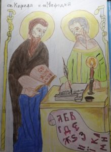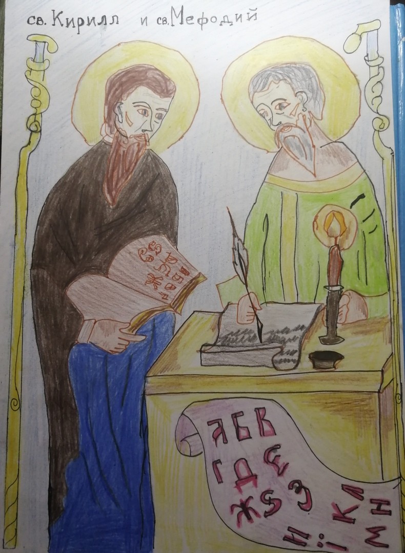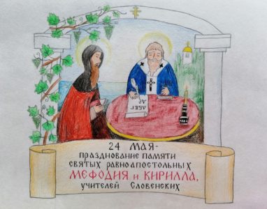 Ко Дню празднования свв. равноапп. Мефодия и Кирилла, учителей Словенских, и Дню славянской письменности и культуры дети и взрослые выполнили рисунки и прописи церковнославянской азбуки