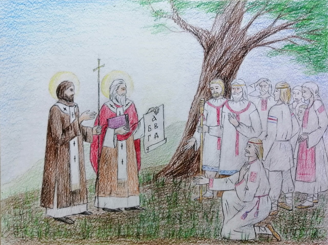 Главная»Приходская жизнь»Ко Дню празднования свв. равноапп. Мефодия и Кирилла, учителей Словенских, и Дню славянской письменности и культуры дети и взрослые выполнили рисунки и прописи церковнославянской азбуки