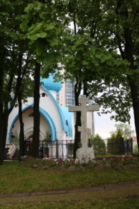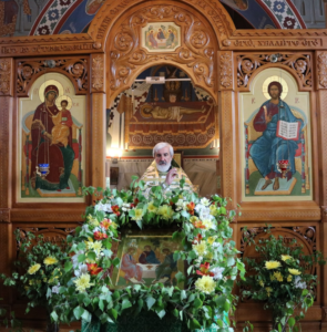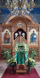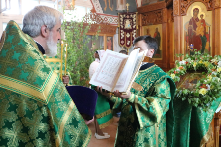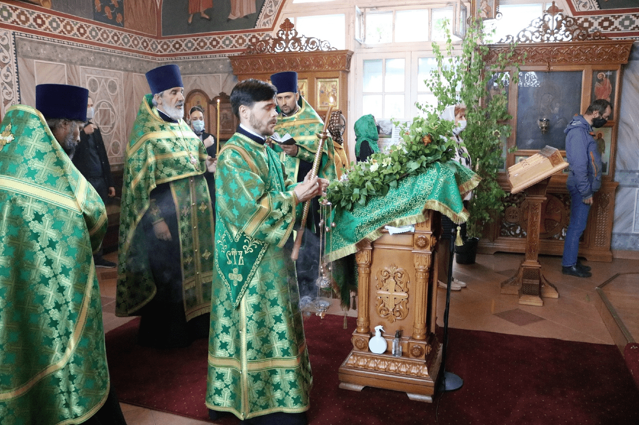 Велича́ем Тя,/ Живода́вче Христе́,/ и чтим Всесвята́го Ду́ха Твоего́,/ Его́же от Отца́ посла́л еси́// Боже́ственным ученико́м Твои́м.