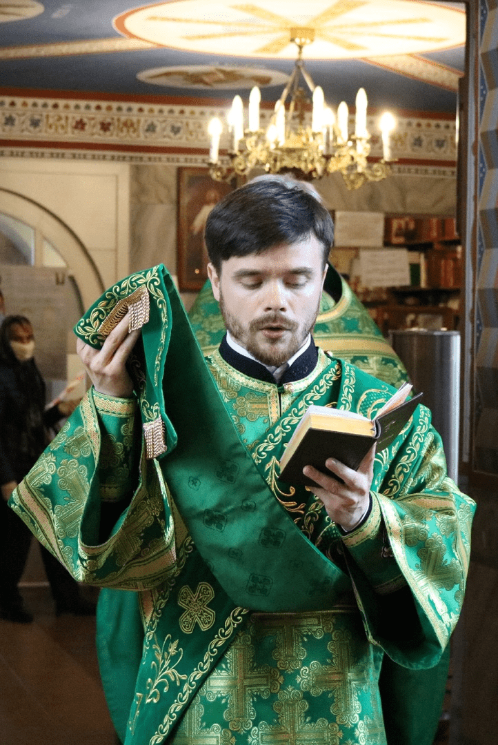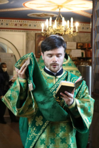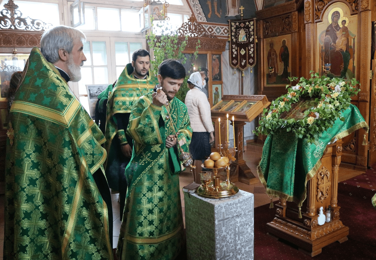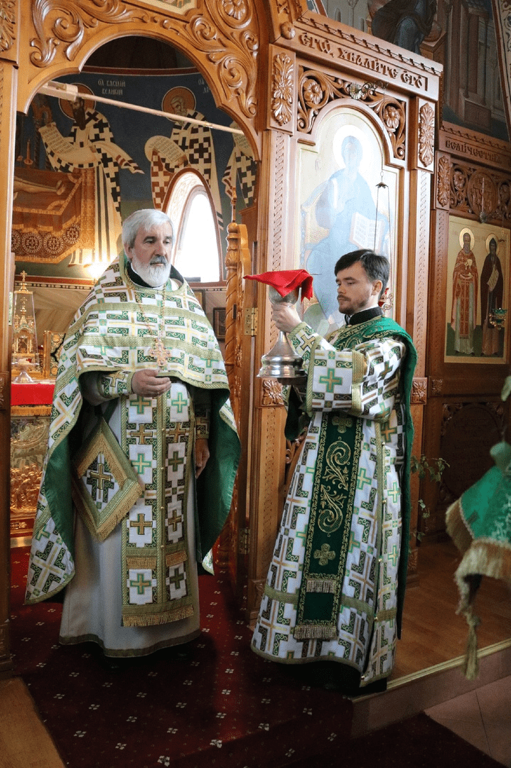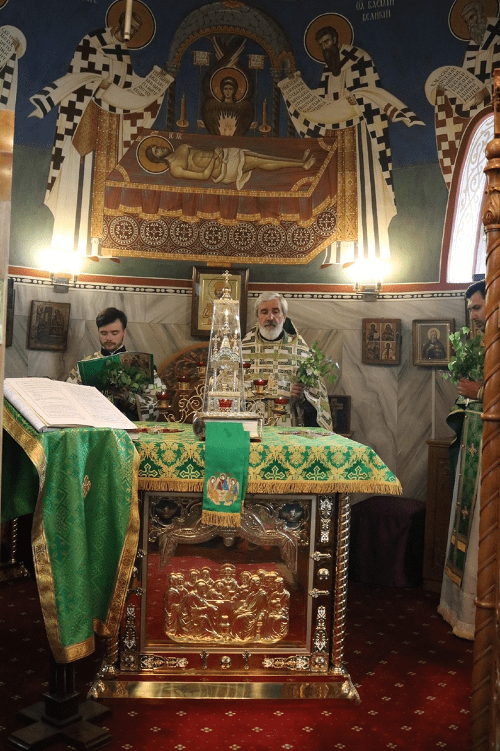 Благослове́н еси́, Христе́ Бо́же наш,/ И́же прему́дры ловцы́ явле́й,/ низпосла́в им Ду́ха Свята́го,// и те́ми уловле́й вселе́нную, Человеколю́бче, сла́ва Тебе́.