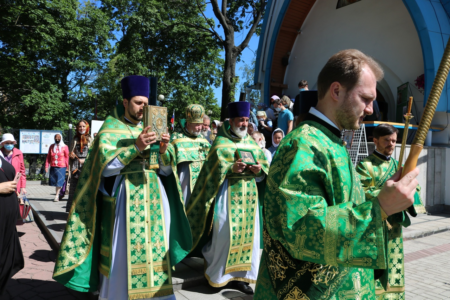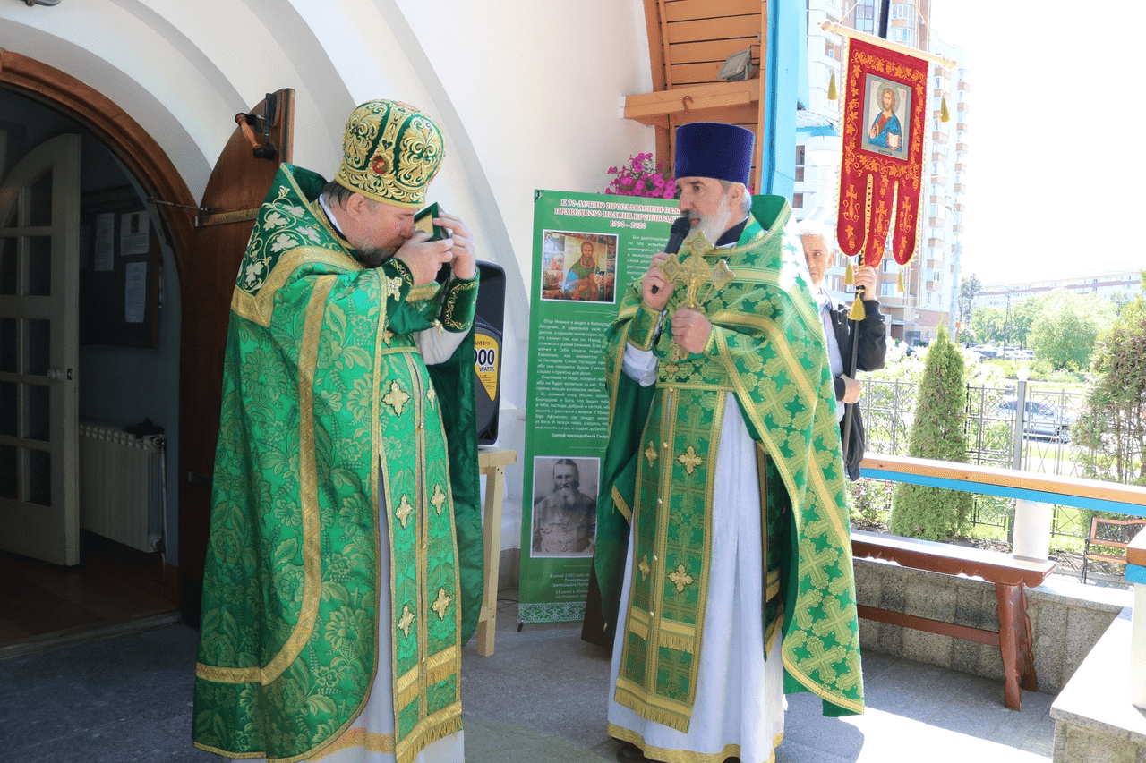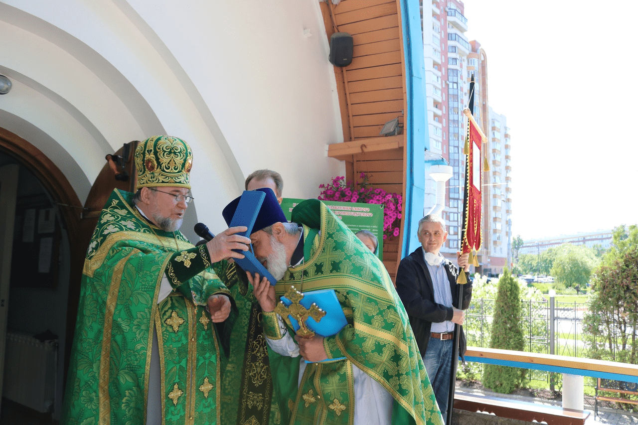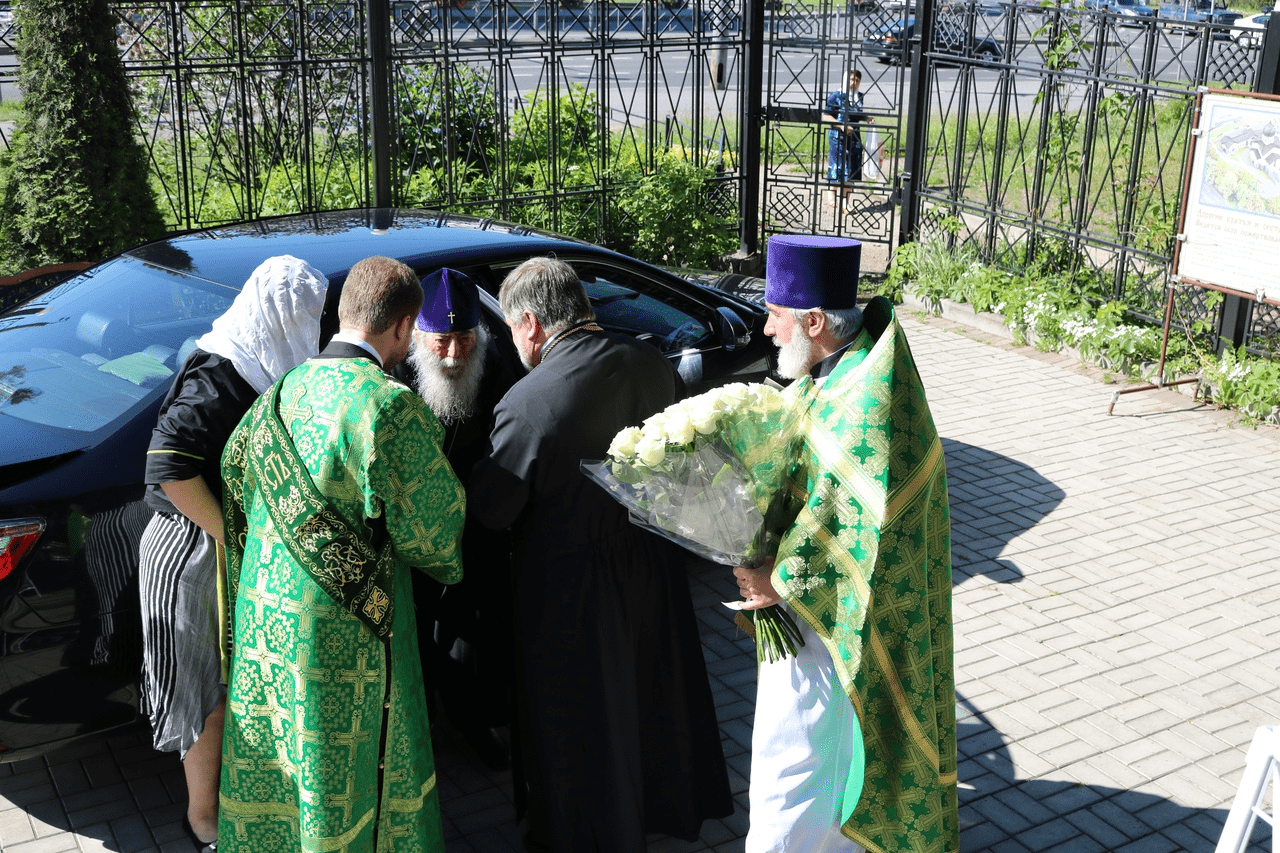 Дорогой отец Сергий, дорогие отцы, братья и сестры, сегодня большая радость для нашего прихода, пока еще не полностью собравшегося в свой родной храм, но этот путь уже открыт. Слава Богу! Поздравляю всех вас с праздником! Сегодня мы празднуем, можно сказать, тройной праздник: воскресный день, Неделя Всех святых, от века Богу благоугодивших, и день прославления святого праведного Иоанна Кронштадтского. Именно в этот день, в первое воскресенье по Пятидесятнице, мы видим плоды действия благодати Святого Духа в Церкви. То, что сотворил Господь для нас, то, что Духом Святым Он творит и по сей день, являет милость Божию к нам, и она открывается в людях в разных дарованиях, в том, что люди, совершая служение свое на земле, умножают духовное богатство Церкви. Наш праздник мы сегодня проводим в достаточно скромных условиях, но чистосердечно. Мы отмечаем 30-летие со дня прославления святого праведного Иоанна Кронштадтского. Я помню этот день в Санкт-Петербурге 30 лет назад. Тогда было особое чувство верующих людей, которые после многих десятилетий почитания святого праведного Иоанна Кронштадтского именно как святого увидели это открыто и смогли знать, что в Иоанновском монастыре на Карповке почивают мощи святого и туда можно приходить уже свободно и молиться этому святому. Мы находимся перед духовным взором святого праведного Иоанна Кронштадтского постоянно. Очень хотелось бы пожелать всем нам, чтобы раскрывались у нас дарования многие-многие, те, которые имел святой Иоанн: в строительстве храмов, в первую очередь, в просветительской деятельности, благотворительности и во многих других делах, которые он совершил. У нас подготовлена выставка: работы наших детей, стенды. Посмотрите, почитайте, даже если несколько строчек, но они могут касаться лично меня, лично моего отношения. Для этого и делалось. Мы очень благодарны вам, дорогой отец Сергий, еще за один плод великий, красивый церкви нашей, который вы нам сегодня преподнесли в лице Владыки митрополита Владимира. Мы будем с радостью нести ответственность, если еще в жизни нам доведется принимать Владыку Владимира, потому что чувство радости духовной находиться рядом с ним очень велико. Пусть хранит вас Господь на многая и благая лета!