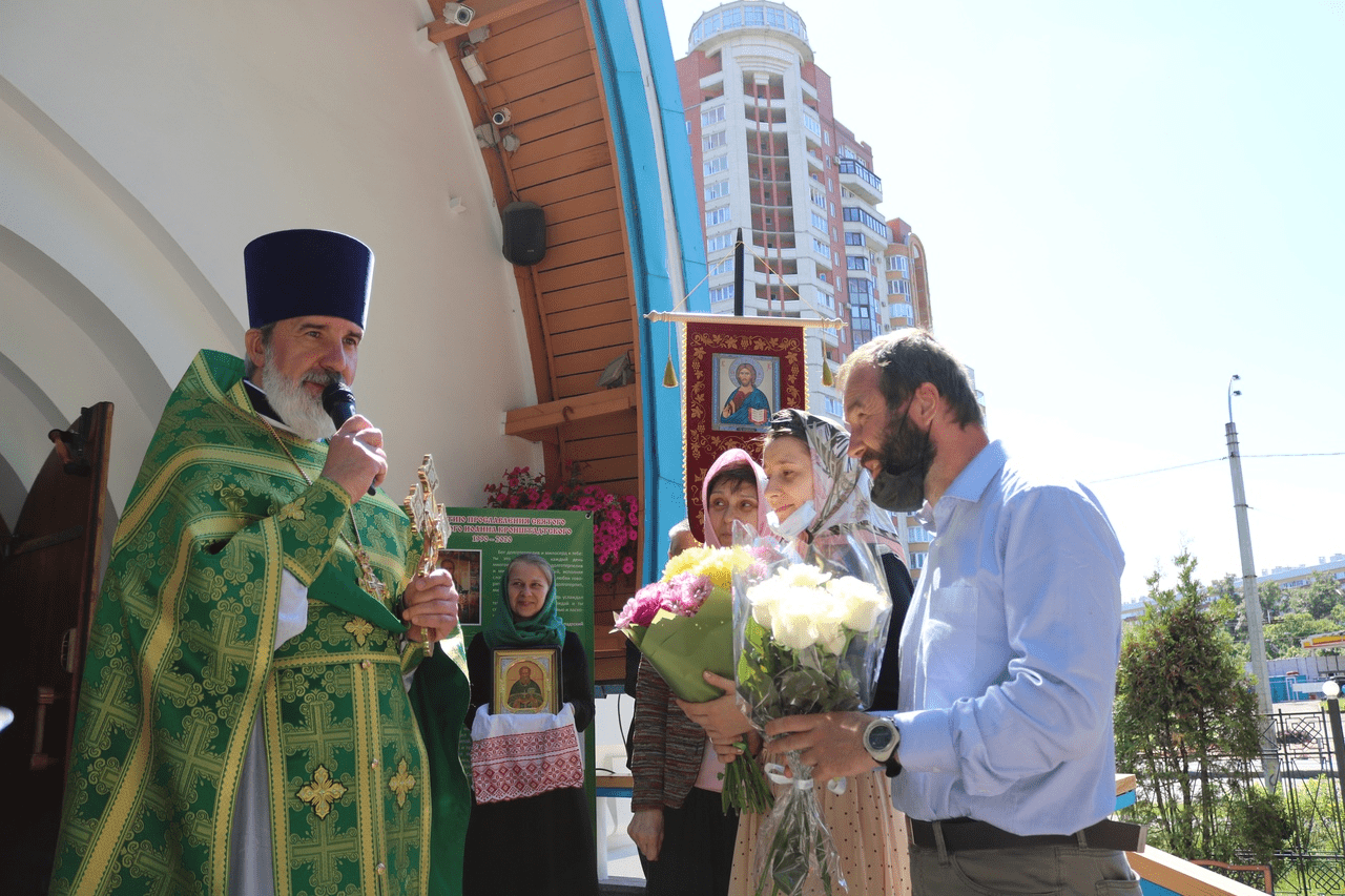 Всех собравшихся с праздником поздравил настоятель храма отец Михаил: