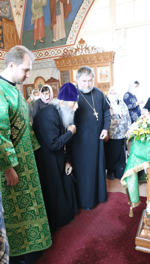 После богослужения отец Сергий поздравил молящихся с праздником и зачитал поздравление Высокопреосвященнейшего митрополита Санкт-Петербургского и Ладожского Варсонофия с 25-летием священнической хиротонии протоиерея Михаила Подолея: