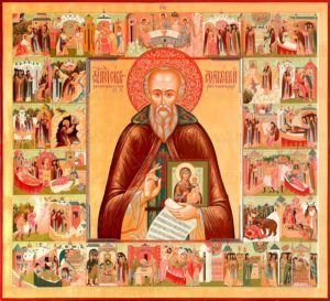 Преподобный Савва Сторожевский, Звенигородский чудотворец, очень молодым пришел в обитель преподобного Сергия Радонежского и принял от него постриг в святое монашество. Он был одним из первых учеников и сподвижников преподобного Сергия. Под руководством этого наставника преподобный Савва научился послушанию, смирению, хранению помыслов, воздержанию и целомудрию. Преподобный любил безмолвие, поэтому избегал бесед с людьми. Он никогда не был праздным; часто плакал о нищете своей души. Святой питался только растительной пищей, носил грубую одежду, спал на полу. Подвижническая жизнь преподобного Саввы снискала ему всеобщую любовь; он был поставлен во пресвитера и назначен преподобным Сергием духовником братии. Наставления преподобного Саввы были настолько назидательны, что не только иноки, но и миряне открывали ему свои души. По благословению преподобного Сергия инок Савва стал игуменом обители Успения Божией Матери. Ее устроил на реке Дубенке великий князь Московский благоверный Димитрий Донской в благодарность за победу над Мамаем. В 1392 году, когда преемник преподобного Сергия – игумен Никон – оставил управление монастырем и затворился в своей келлии, братия Свято-Троицкого монастыря умолили преподобного Савву вернуться в их обитель и принять игуменский жезл. В течение шести лет преподобный Савва, прибегая к молитвенной помощи преподобного Сергия, пас порученное ему стадо. По примеру преподобного Сергия святой Савва во время игуменства молитвою извел источник воды за северной стеной монастыря.