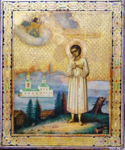 Святой Артемий Веркольский родился в 1532 году в селе Верколе Двинского края в благочестивой крестьянской семье. Воспитанный в страхе Божием и христианском благочестии, святой Артемий еще и в детстве отличался кротостью, послушанием и трудолюбием. В возрасте 12 лет, работая в поле, он был убит молнией. Суеверные односельчане оставили тело блаженного Артемия, как умершего от внезапной смерти, неотпетым и положили его лесу, поверх земли, прикрыв хворостом и берестой.