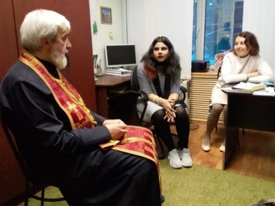 После этого состоялась беседа с воспитанниками и, в частности с теми, кто готовится принять таинство святого Крещения.