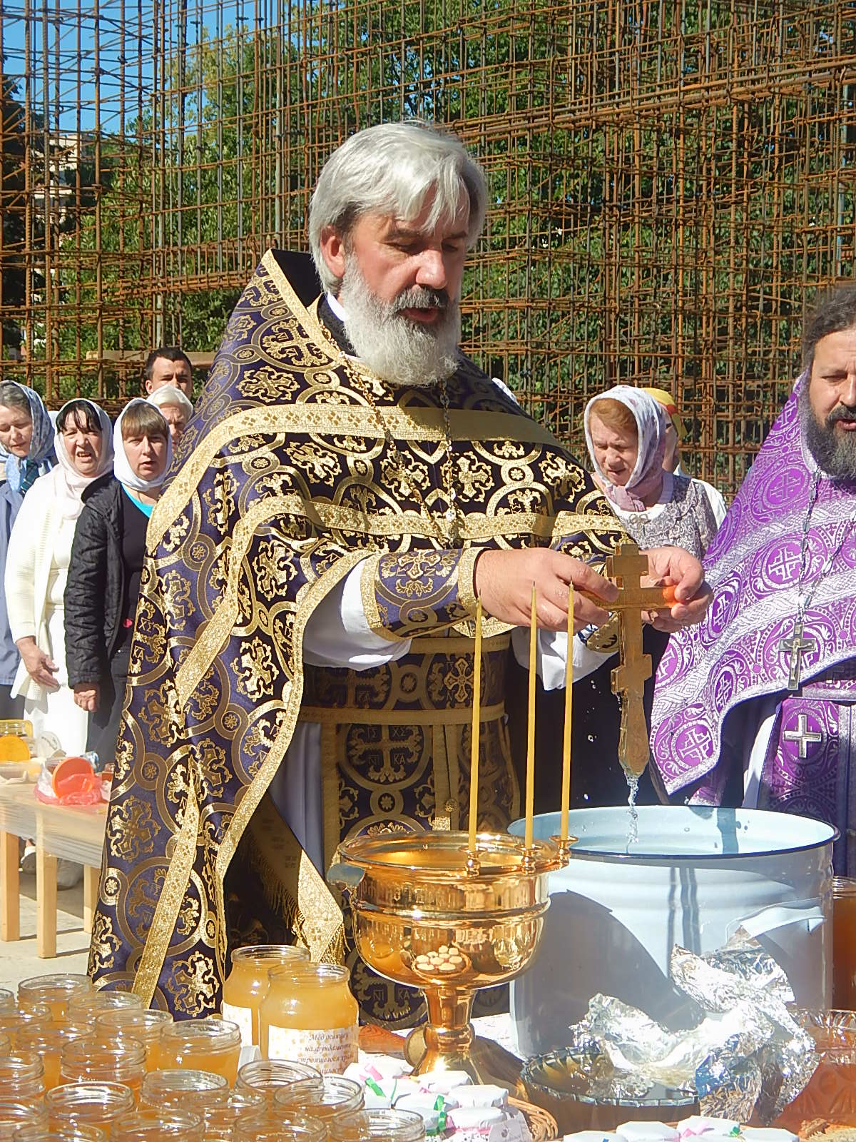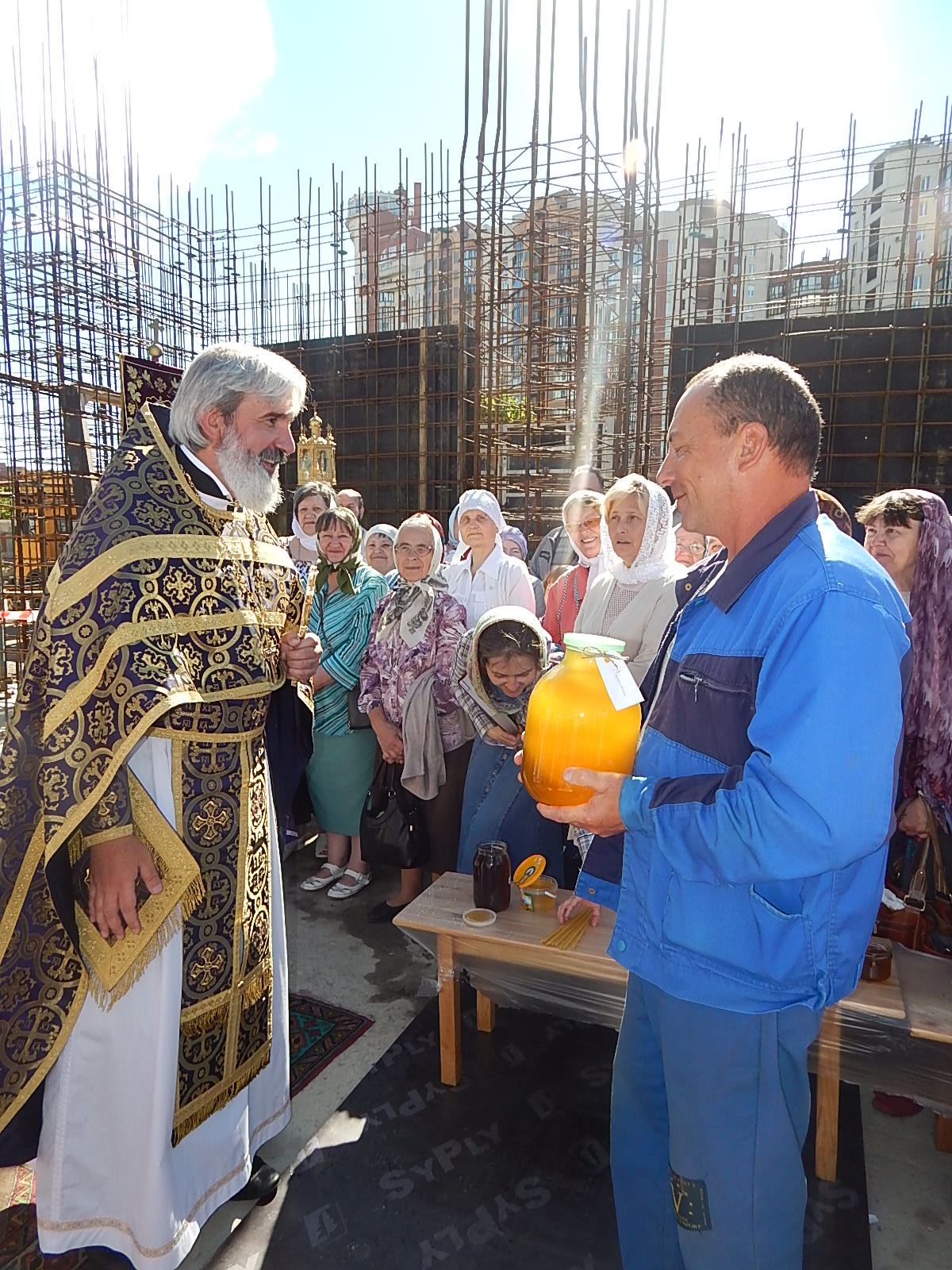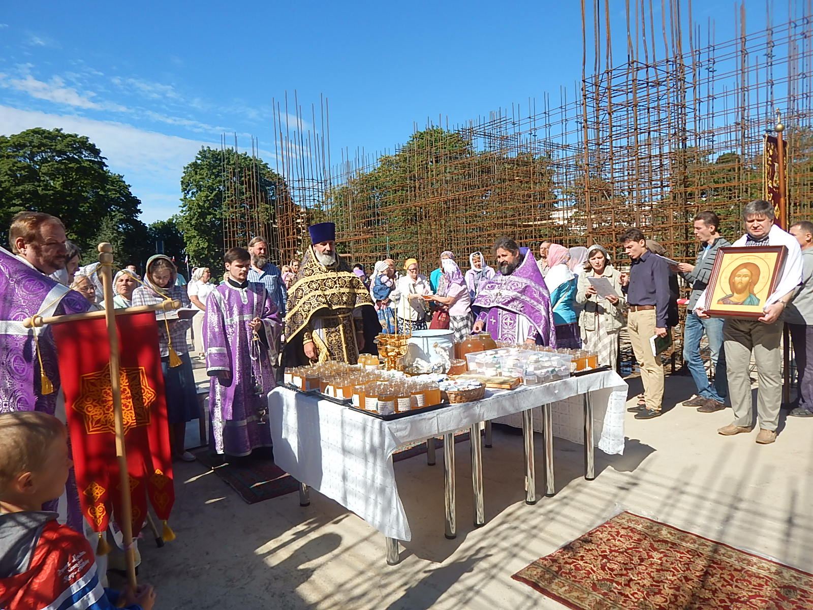 Вечером 13 августа, накануне праздника, в храме святого праведного Иоанна Кронштадтского было совершено уставное богослужение с выносом Креста. 14 августа была отслужена Божественная Литургия, которую возглавил настоятель храма прот. Михаил Подолей в сослужении прот. Сергия Окунева, иер. Валерия Волкова и диакона Константина Подолея. В конце литургии состоялся крестный ход и водосвятный молебен на первом этаже храма. Строители только недавно, пройдя нулевой цикл работ, приступили к возведению стен и колонн первого этажа. Собравшиеся с большим духовным подъемом и надеждой молились о даровании Божией помощи в строительстве храма.