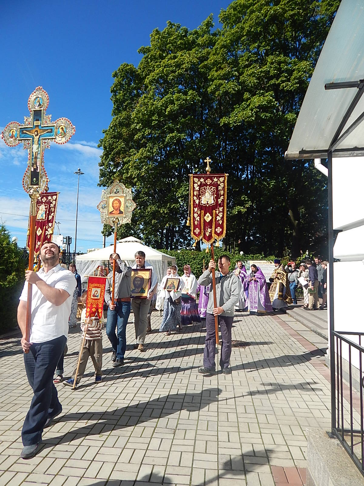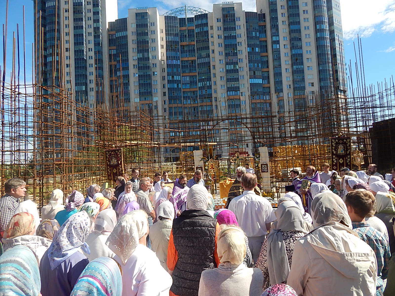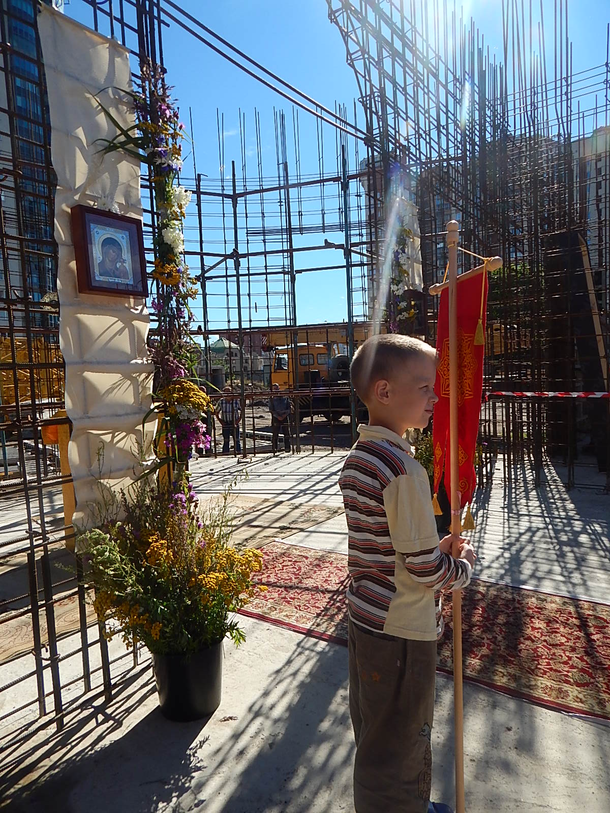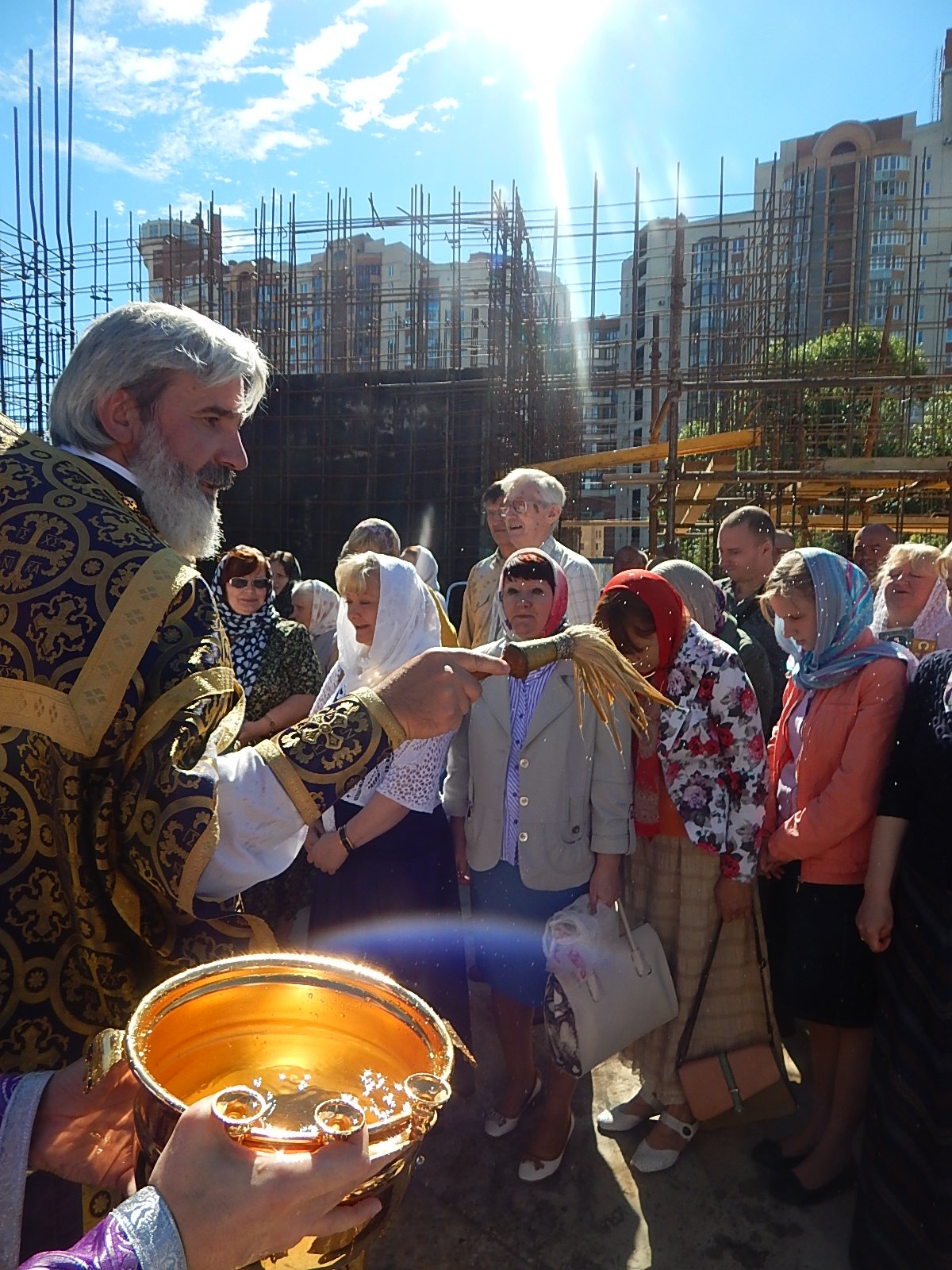 Вечером 13 августа, накануне праздника, в храме святого праведного Иоанна Кронштадтского было совершено уставное богослужение с выносом Креста. 14 августа была отслужена Божественная Литургия, которую возглавил настоятель храма прот. Михаил Подолей в сослужении прот. Сергия Окунева, иер. Валерия Волкова и диакона Константина Подолея. В конце литургии состоялся крестный ход и водосвятный молебен на первом этаже храма. Строители только недавно, пройдя нулевой цикл работ, приступили к возведению стен и колонн первого этажа. Собравшиеся с большим духовным подъемом и надеждой молились о даровании Божией помощи в строительстве храма.