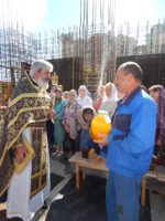 Мы сейчас находимся на фундаменте нижнего храма-крестильни в честь Царственный Страстотерпцев. Несмотря на внешнее неустройство: вместо пола — бетон, кругом — арматура, сегодня мы пришли молиться сюда, чтобы Господь даровал нам силы и возможность завершить начатое строительство».