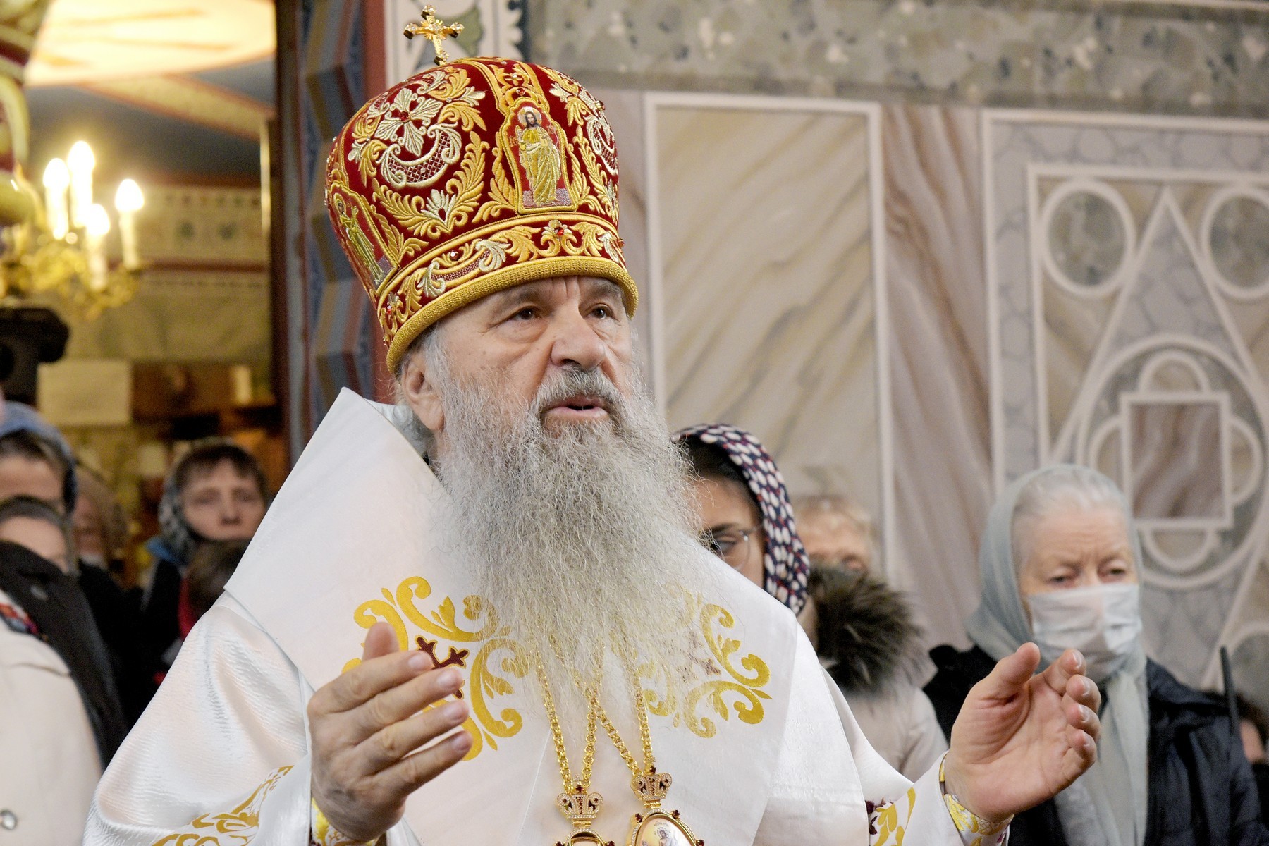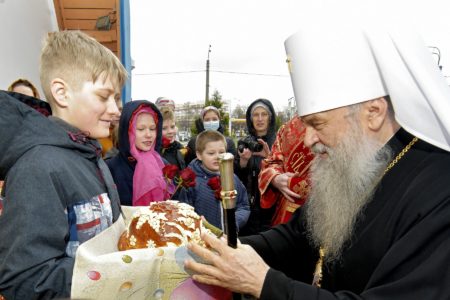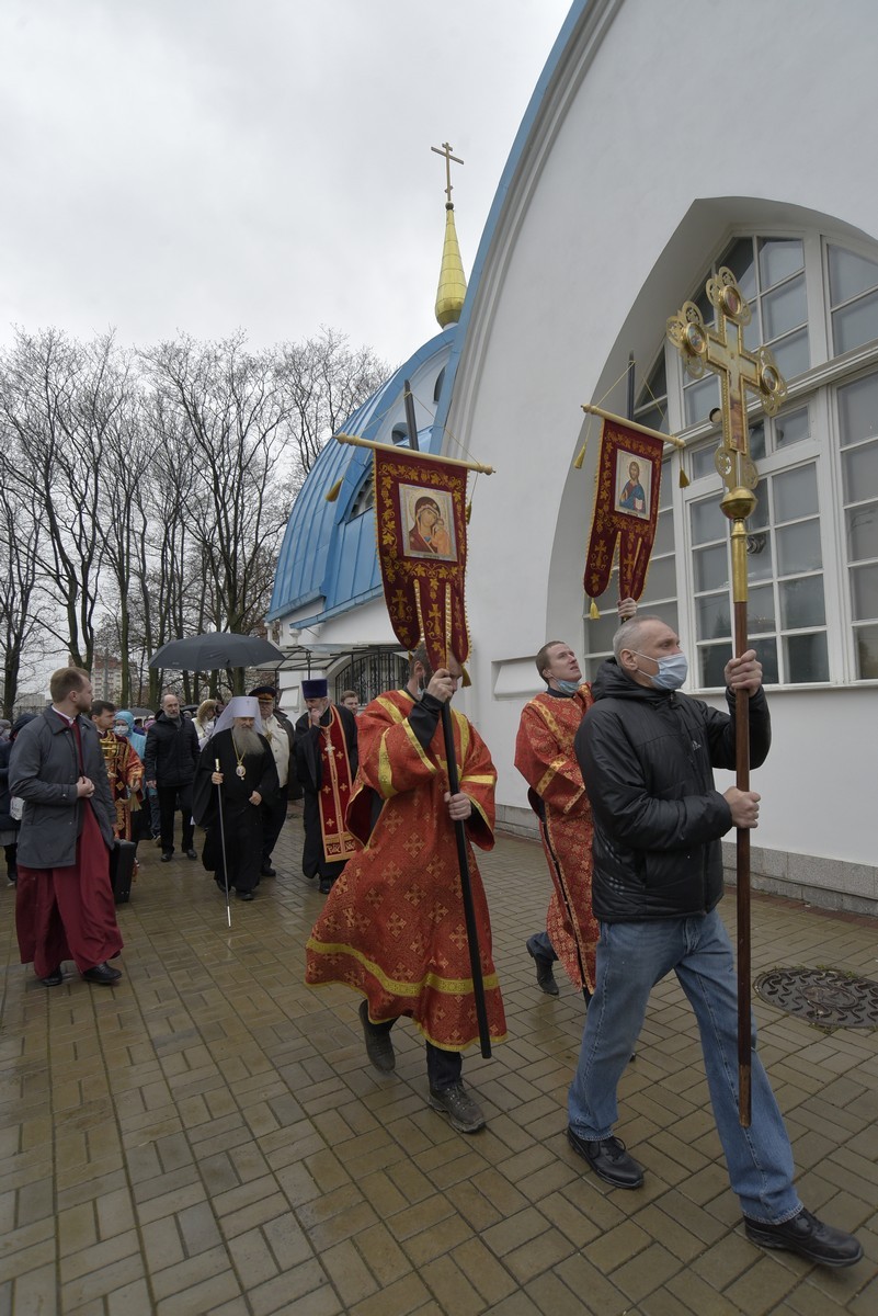 В Светлый вторник, 4 мая, митрополит Санкт-Петербургский и Ладожский Варсонофий совершил Божественную литургию в храме праведного Иоанна Кронштадтского на Кронштадтской площади.