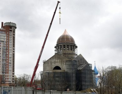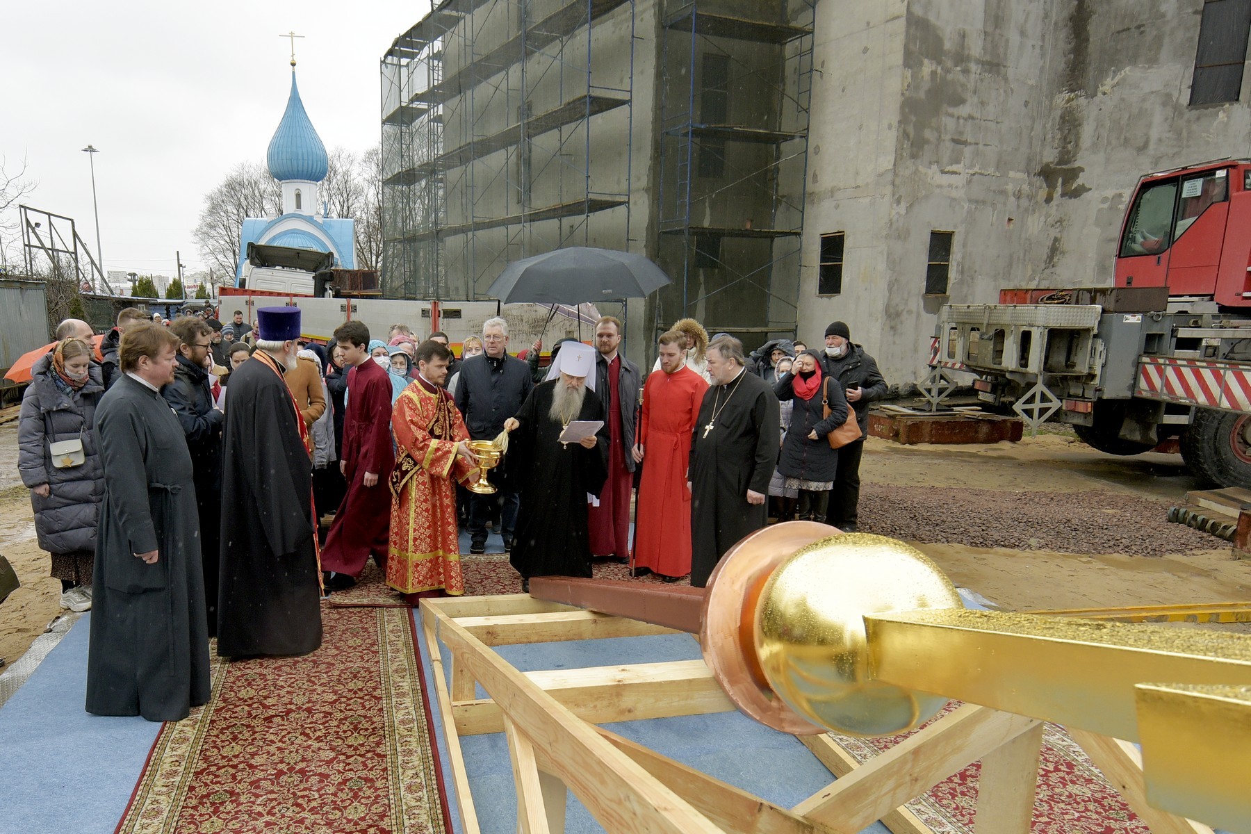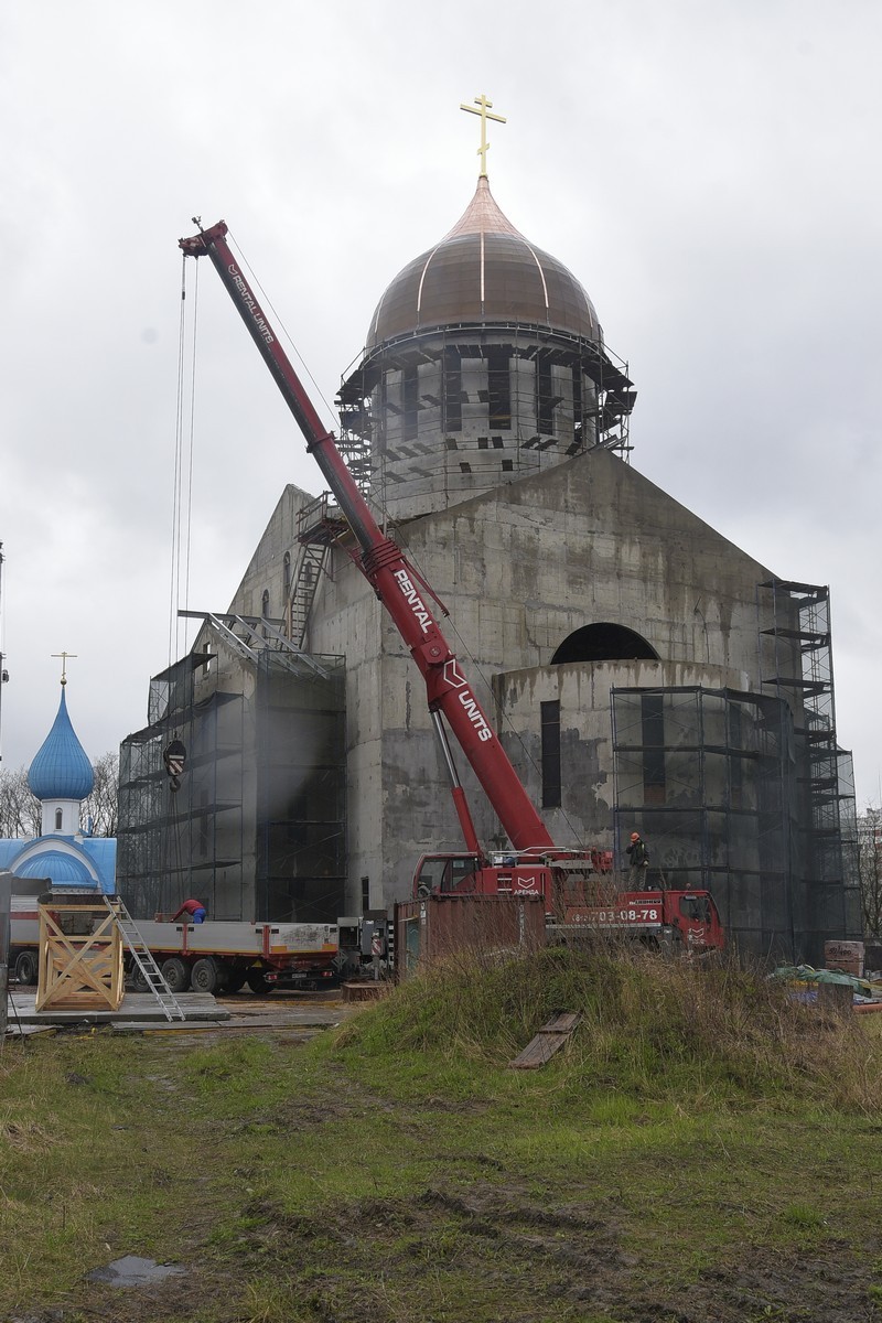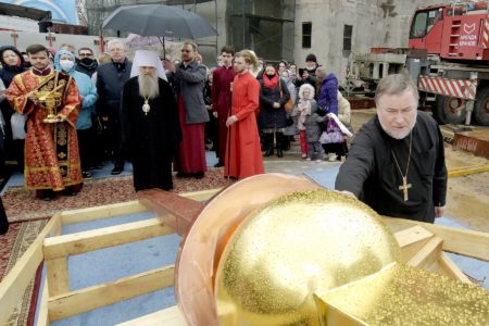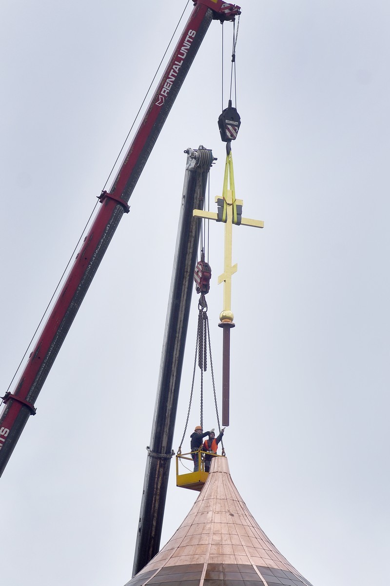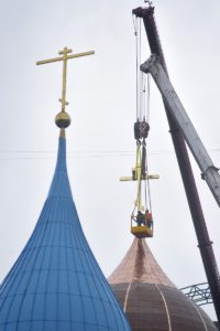 Был освящен крест на купол строящегося храма Всемилостивого Спаса.