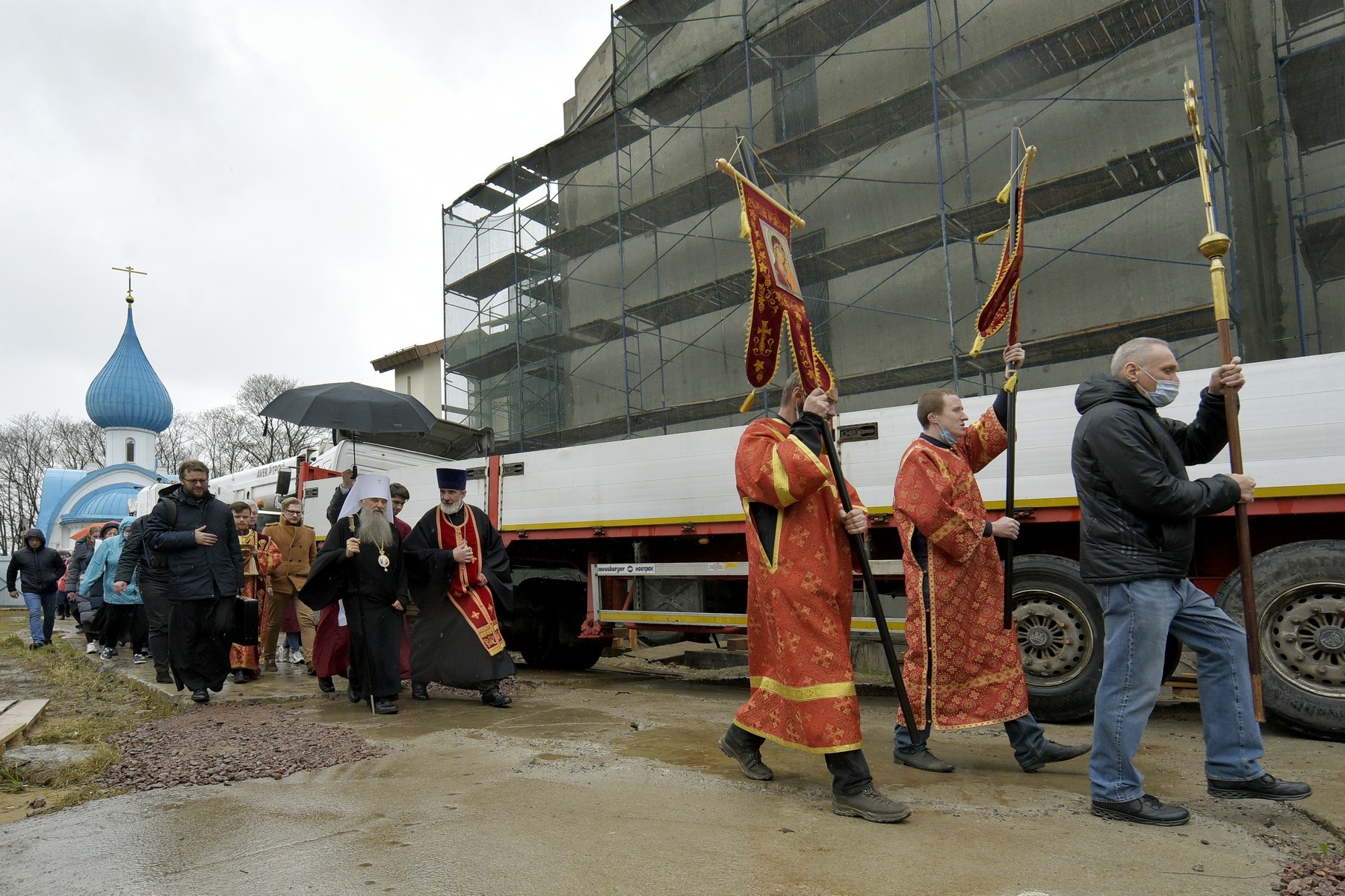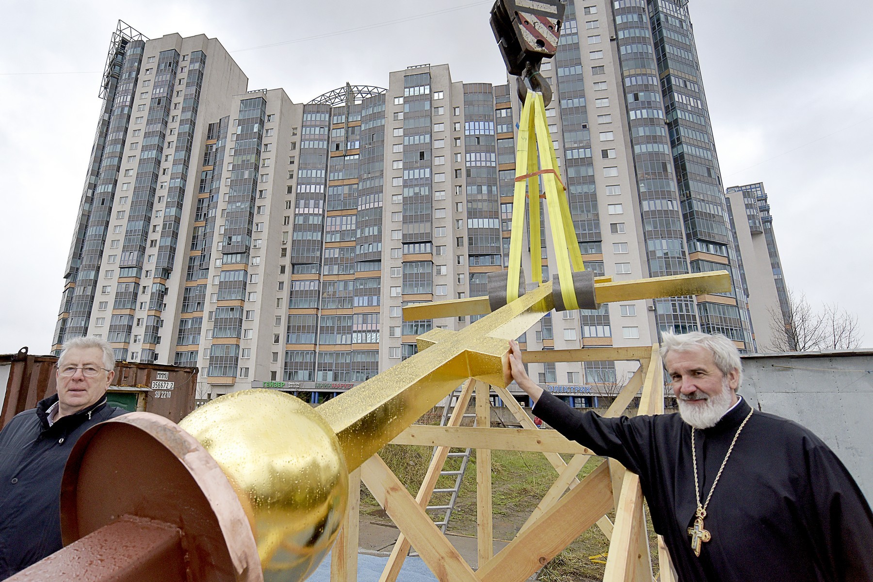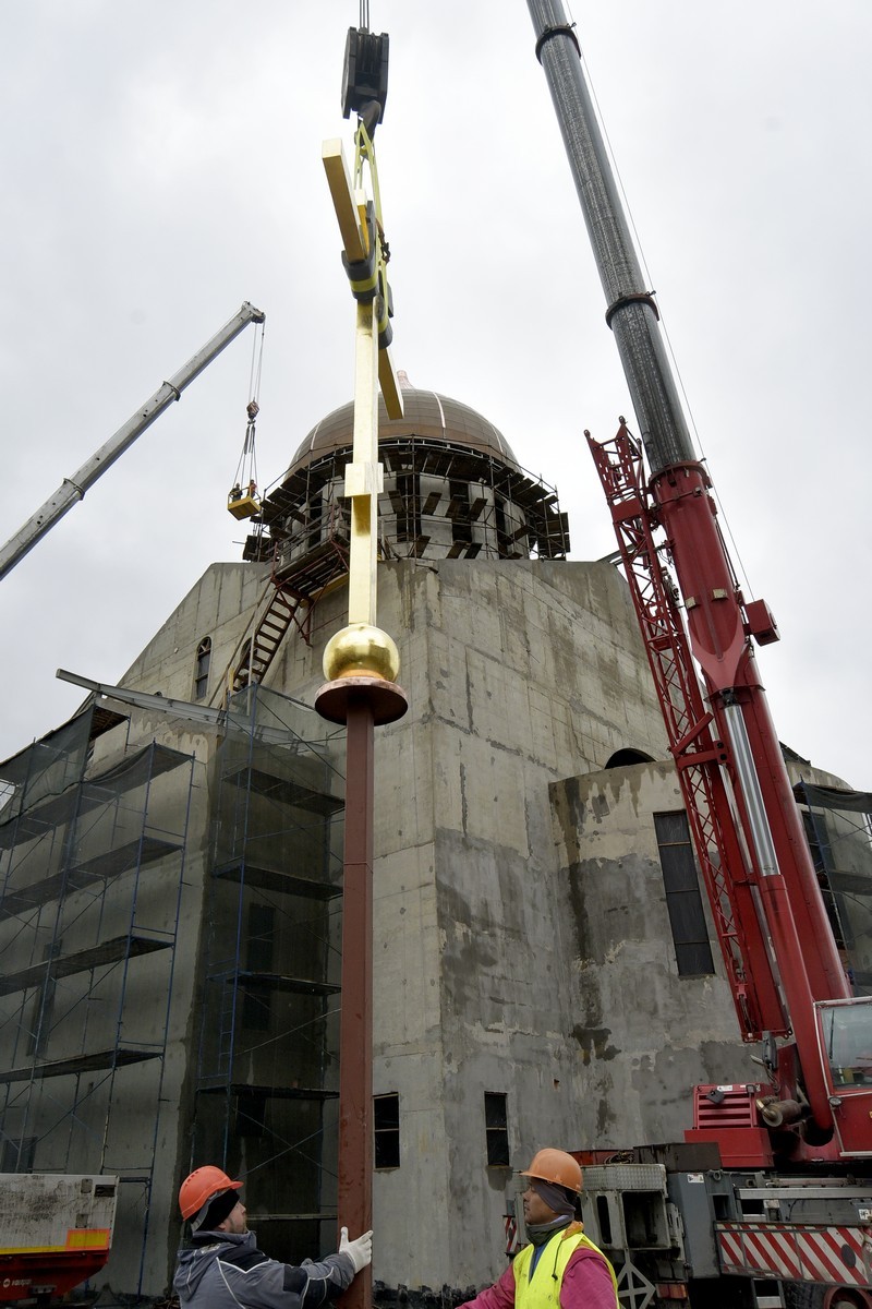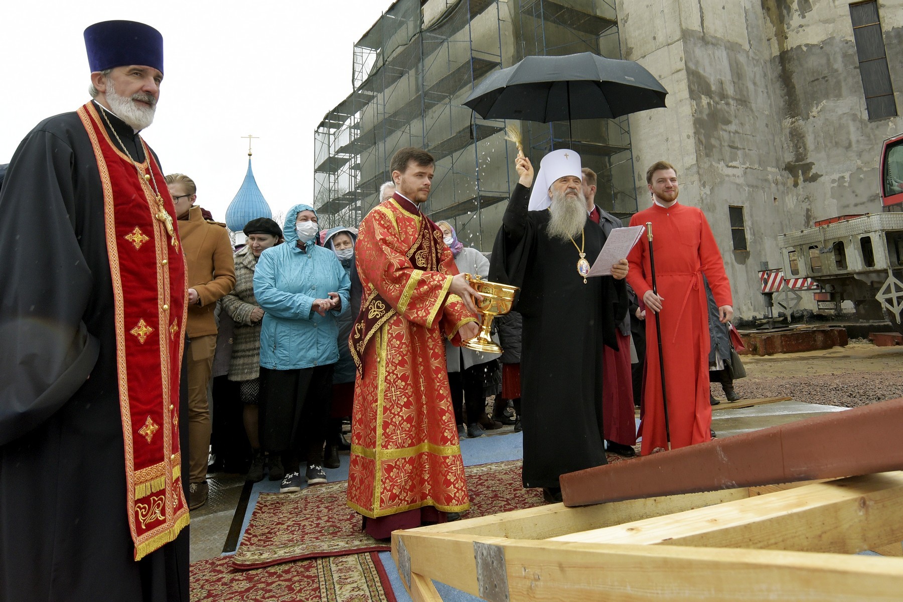 Был освящен крест на купол строящегося храма Всемилостивого Спаса.