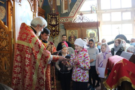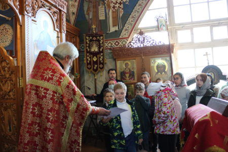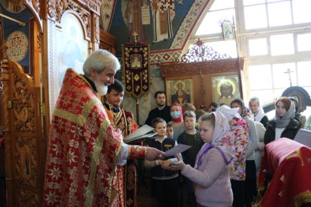 По окончании богослужения отец Михаил поблагодарил всех, кто потрудился на благо духовного просвещения детей и взрослых: директора воскресной школы диакона Константина Подолея, иерея Николая Терентьева, методиста Основ Православной культуры ИМЦ Красносельского района Хваткову Эльвиру Рифкатовну, преподавателей воскресной школы Харченко Елену Николаевну (преподаватель предмета Иллюстрации к церковным событиям), Кашко Марию Васильевну (преподаватель предмета Основы церковного хорового пения), Жиленко Лилию Евгеньевну (преподаватель предмета Закон Божий), Довженко Марину Григорьевну (преподаватель предмета Рукоделие).
