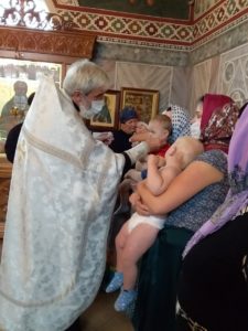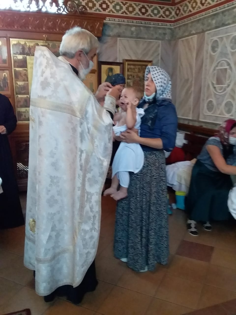 Благочинный Красносельского округа протоиерей Михаил Подолей совершил Таинство Крещения над младенцами и взрослыми проживающими в Отделении социальной реабилитации «Маленькая мама» кризисного центра помощи женщинам.