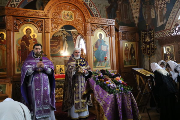 Накануне, в пятницу вечером, было совершено уставное богослужение с выносом Креста и поклонением ему по чину Крестопоклонной Недели. В день праздника была совершена Литургия. После окончания службы совершено малое освящение воды и меда нового сбора.