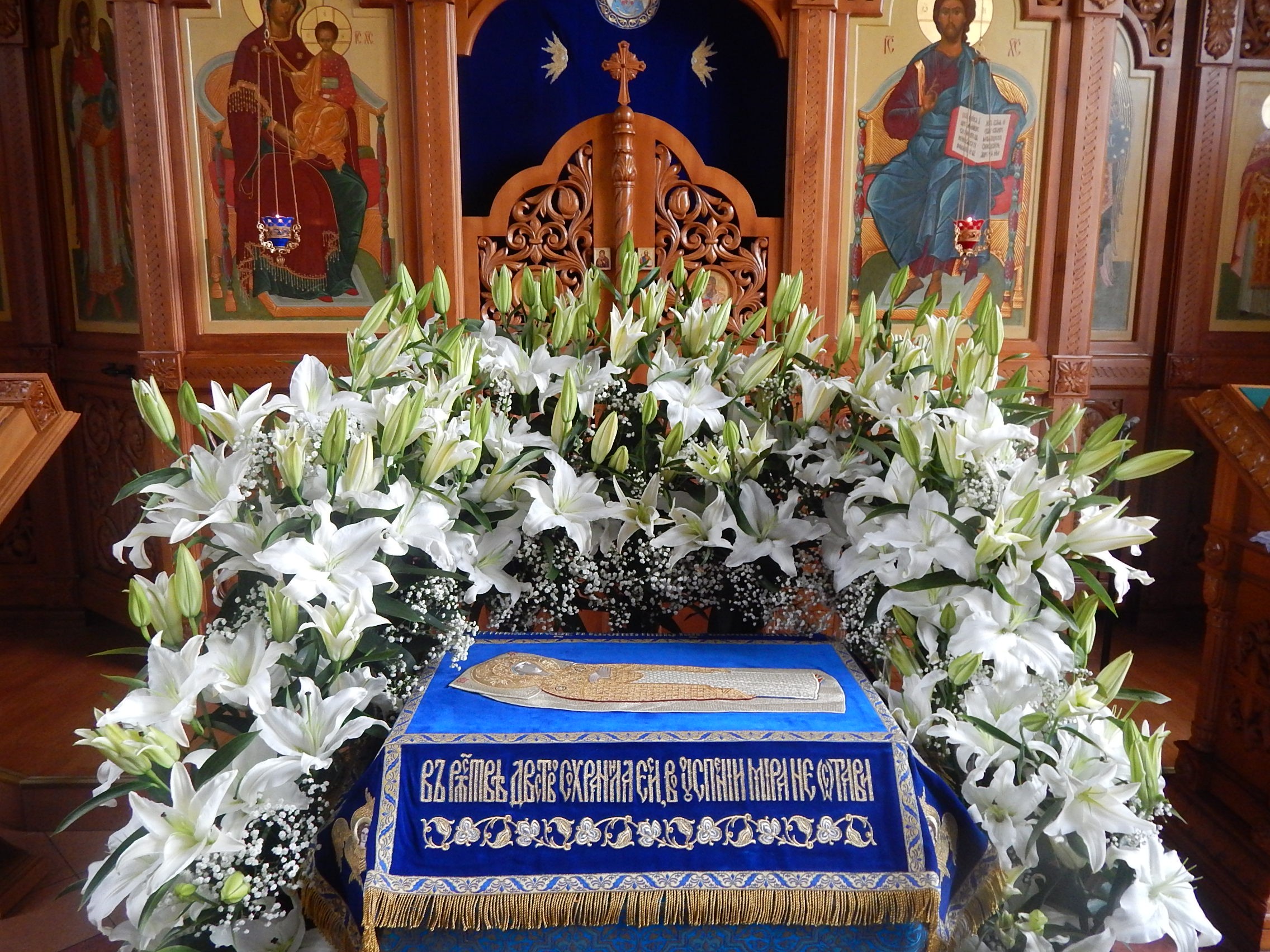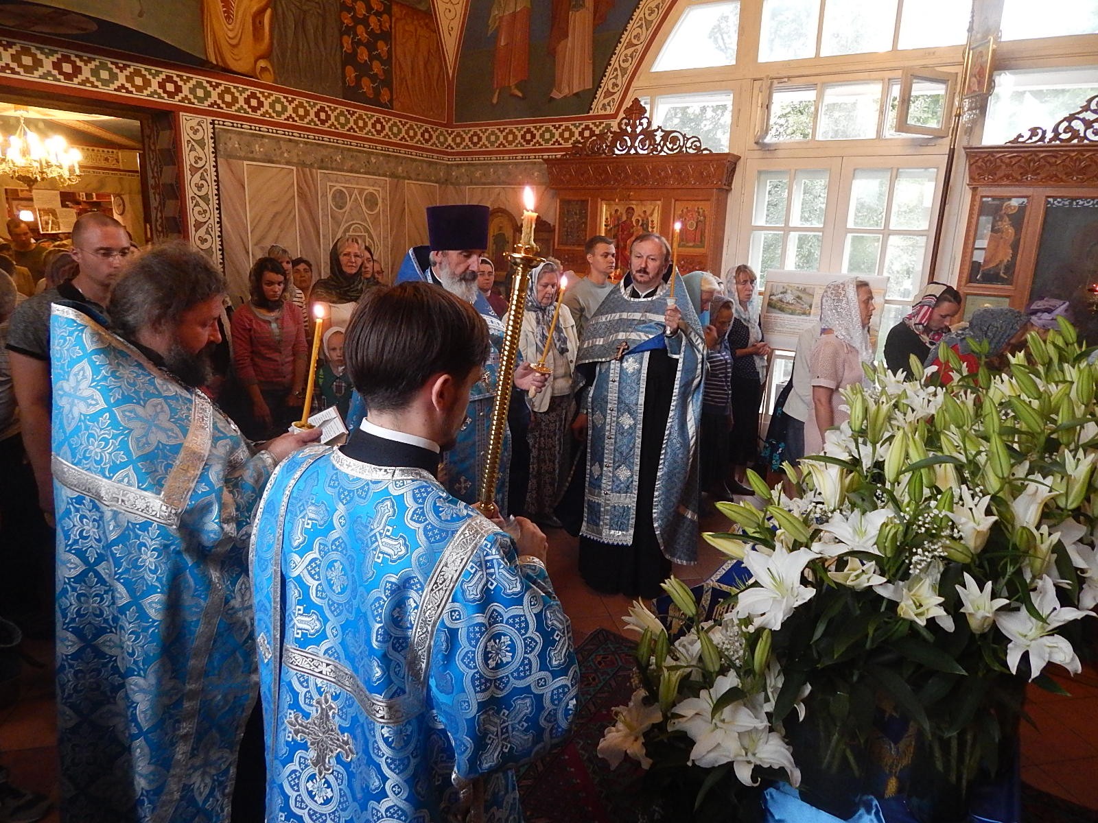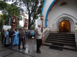 Накануне праздника Успения Божией Матери, вечером 27 августа, в храме св. прав. Иоанна Кронштадтского была отслужена всенощная с выносом Плащаницы.