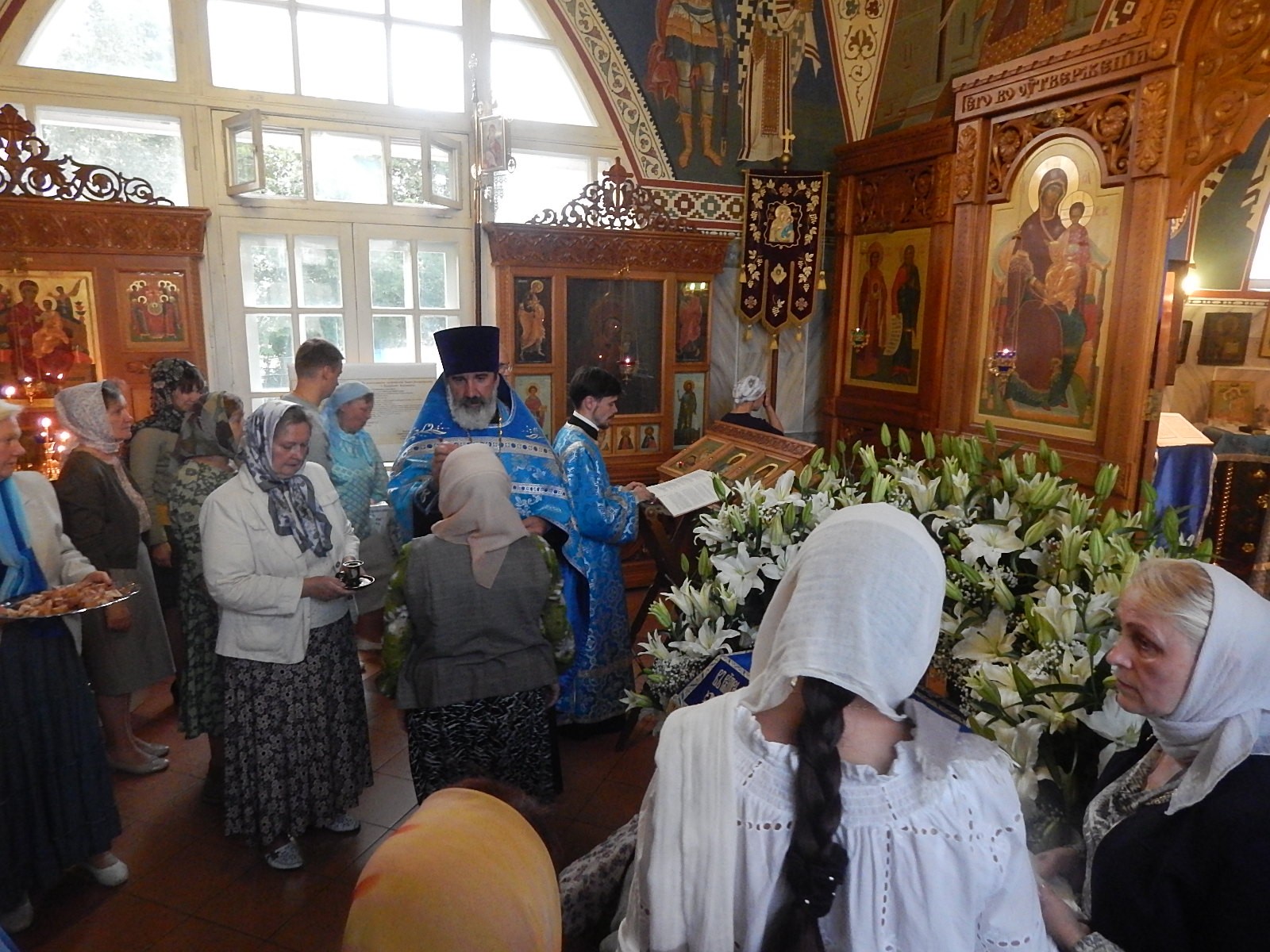 В сам праздник, 28 августа, была совершена Божественная Литургия. Ее возглавил настоятель храма прот. Михаил Подолей. Ему сослужили клирики храма: прот. Сергий Окунев, иер. Валерий Волков и диак. Константин Подолей.