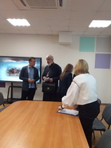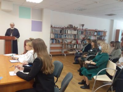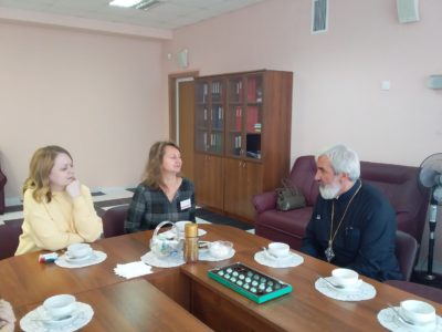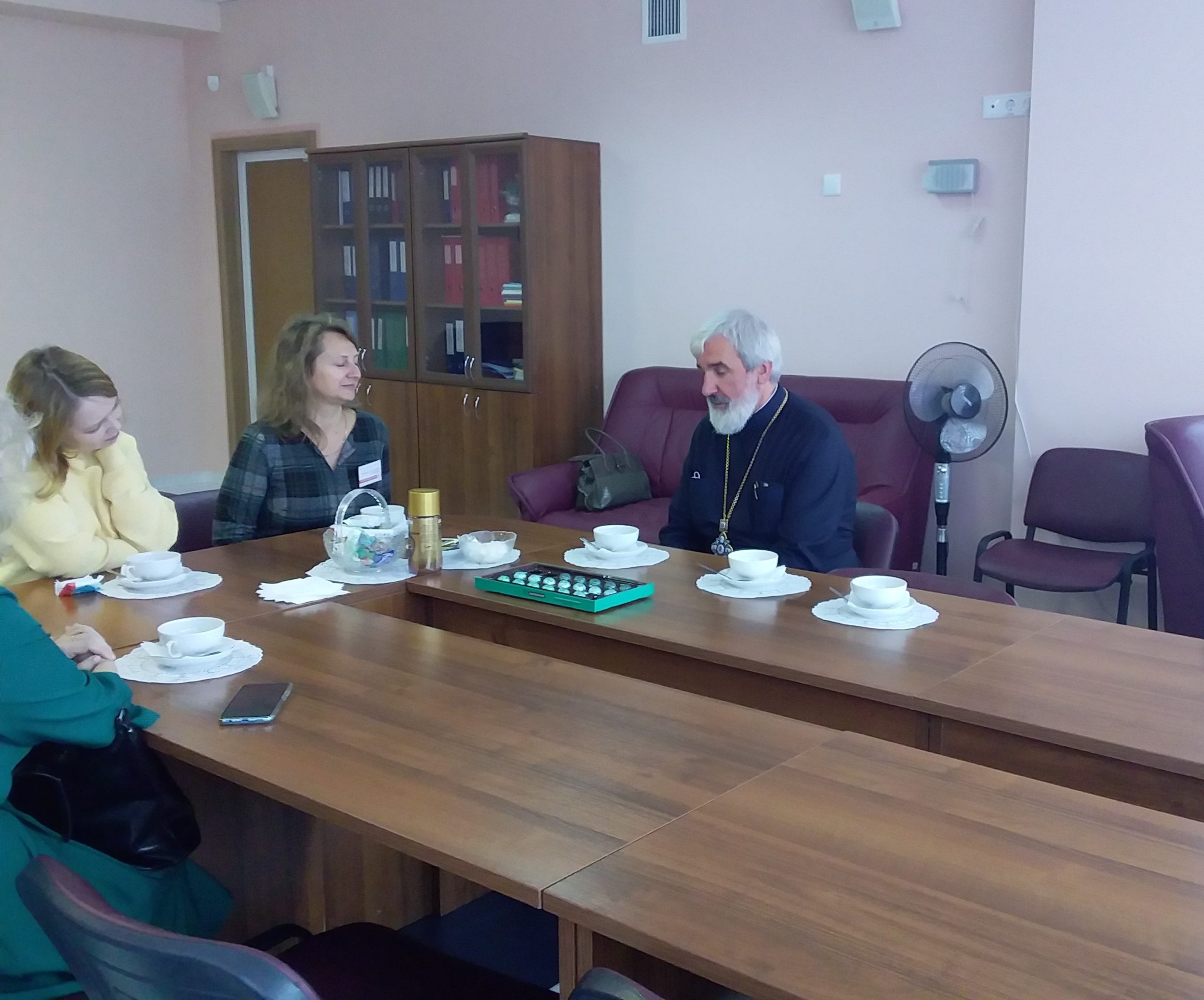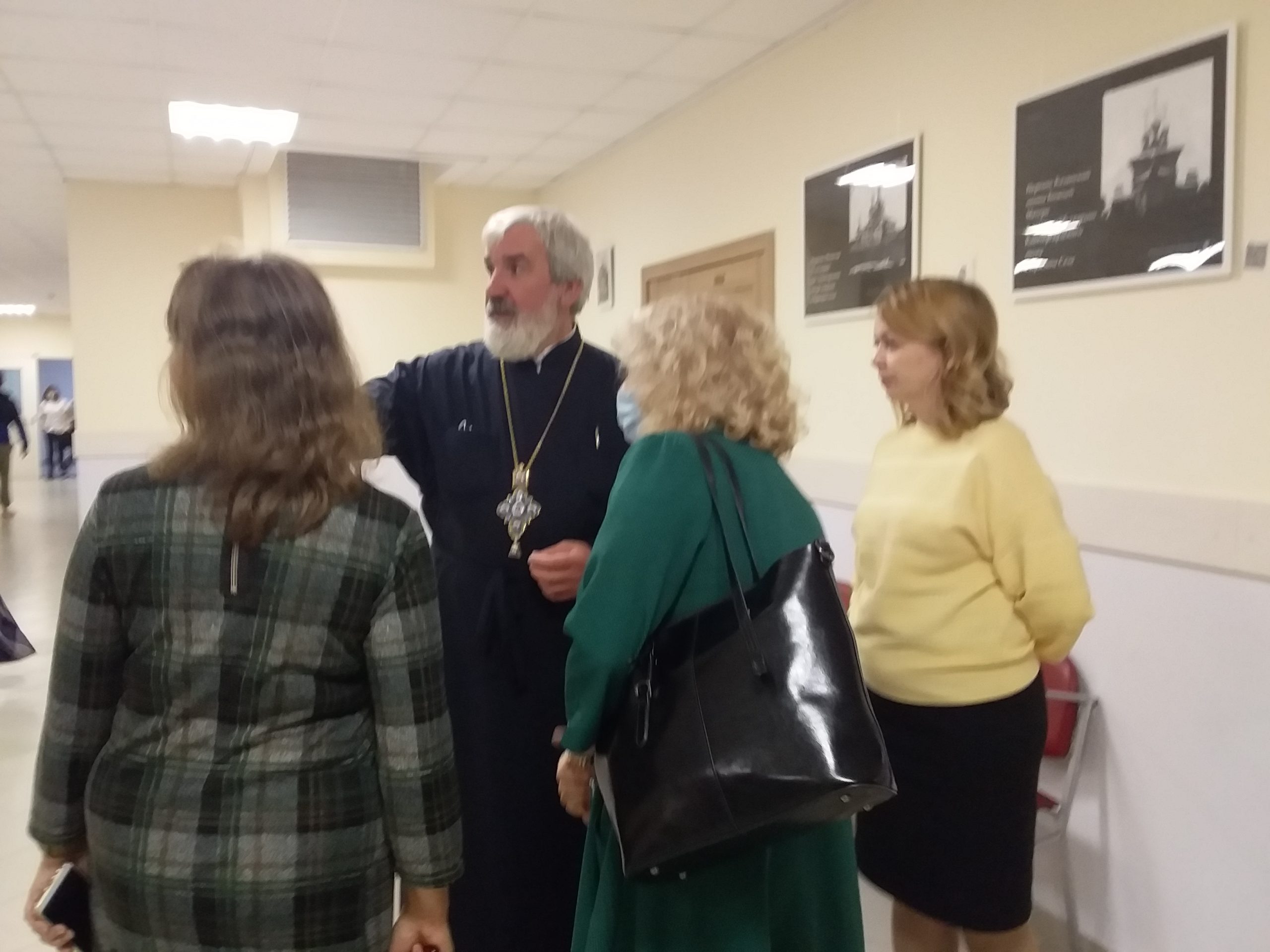 После указанного мероприятия состоялась беседа Благочинного с директором школы, в которой затрагивались вопросы взаимодействия школы и Благочиния. В беседе принимали участие заместитель директора по методической работе Савченко Татьяна Николаевна и методист информационно-методического центра по основам православной культуры Красносельского района Хваткова Эльвира Рифкатовна.