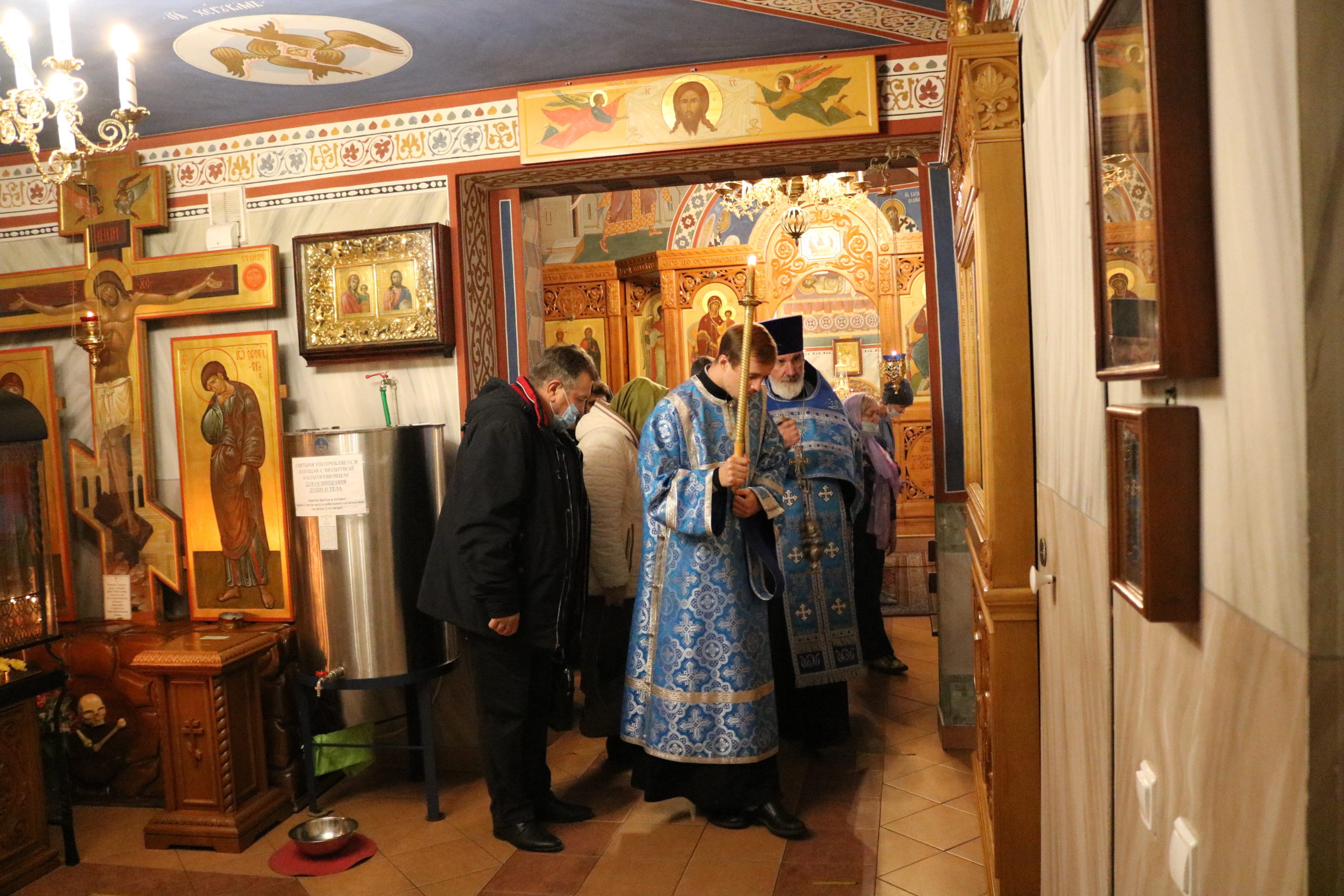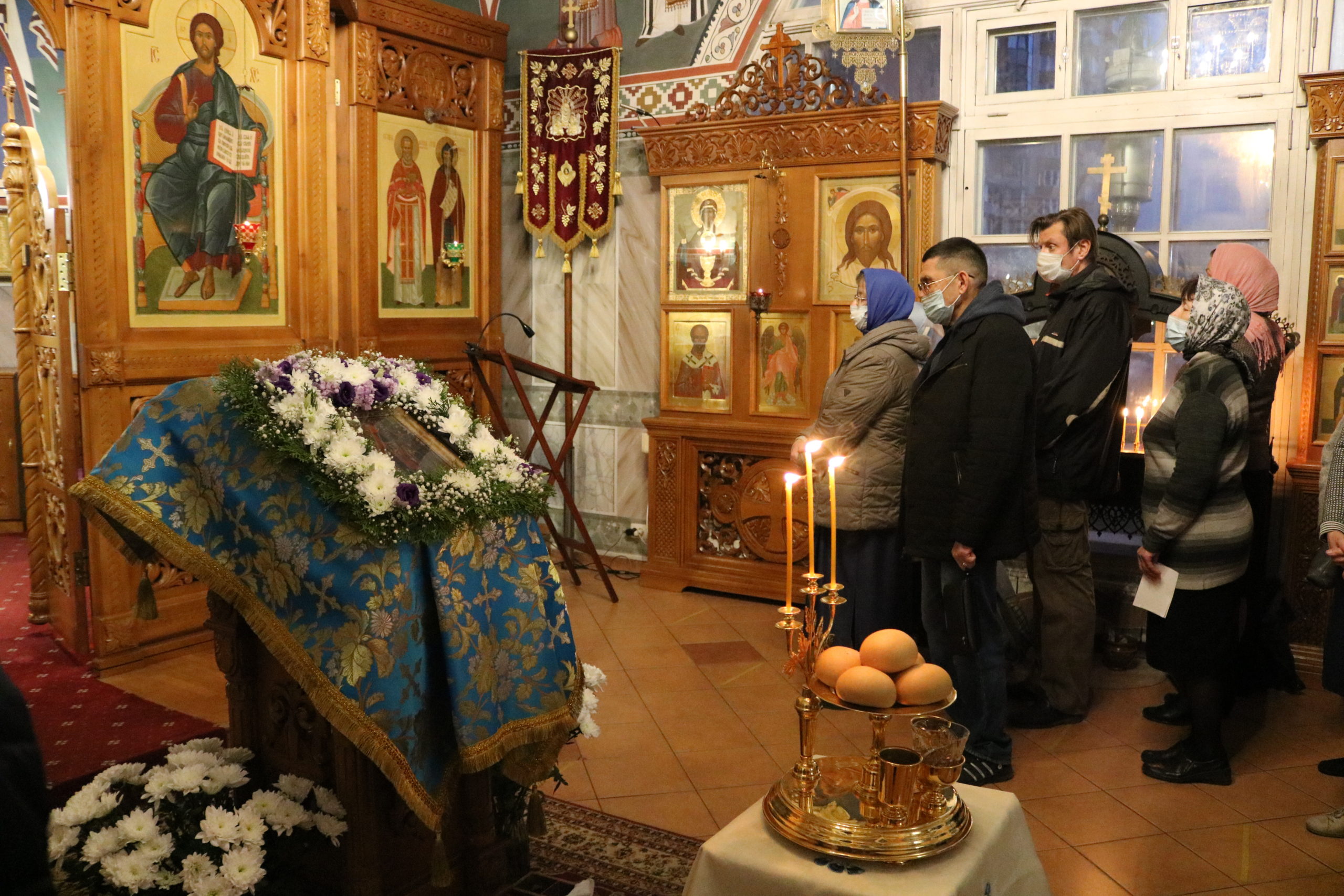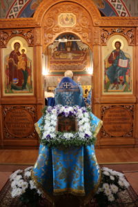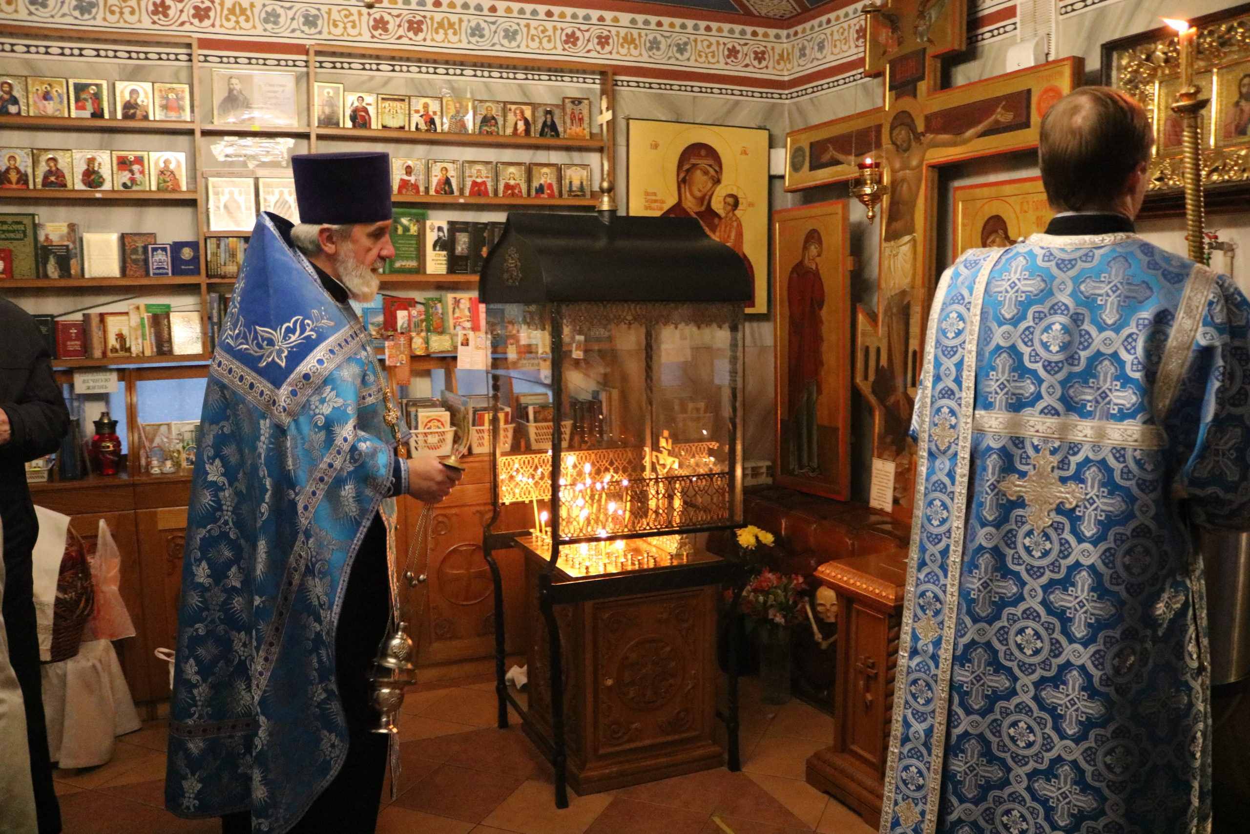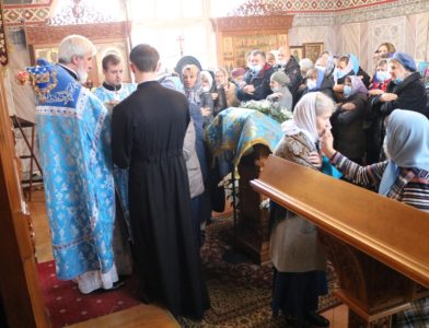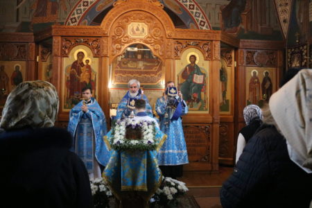 Накануне праздника Всенощное бдение и в сам праздник Покрова Пресвятой Владычицы нашей Богородицы и Приснодевы Марии Божественную литургию в храме святого праведного Иоанна Кронштадтского совершил настоятель протоирей Михаил Подолей в сослужении клира.