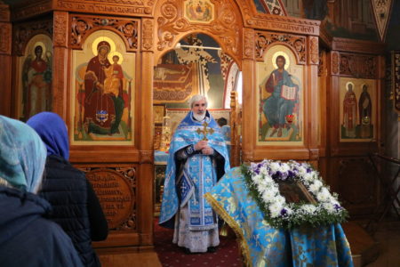 Отец Михаил поздравил всех прихожан с праздником. Настоятель напомнил, что Богородица стала непосредственной участницей тайны Боговоплощения, Божией Матерью. Родила Спасителя мира на земле, Иисуса Христа, благодаря своей чистоте, большому труду, смирению, послушанию, горячей вере в Бога. И мы должны не просто уповать на её заступничество, а уподобляться ей – быть смиренными, терпеливыми, небезразличными, красивыми не только телом, но и душой.