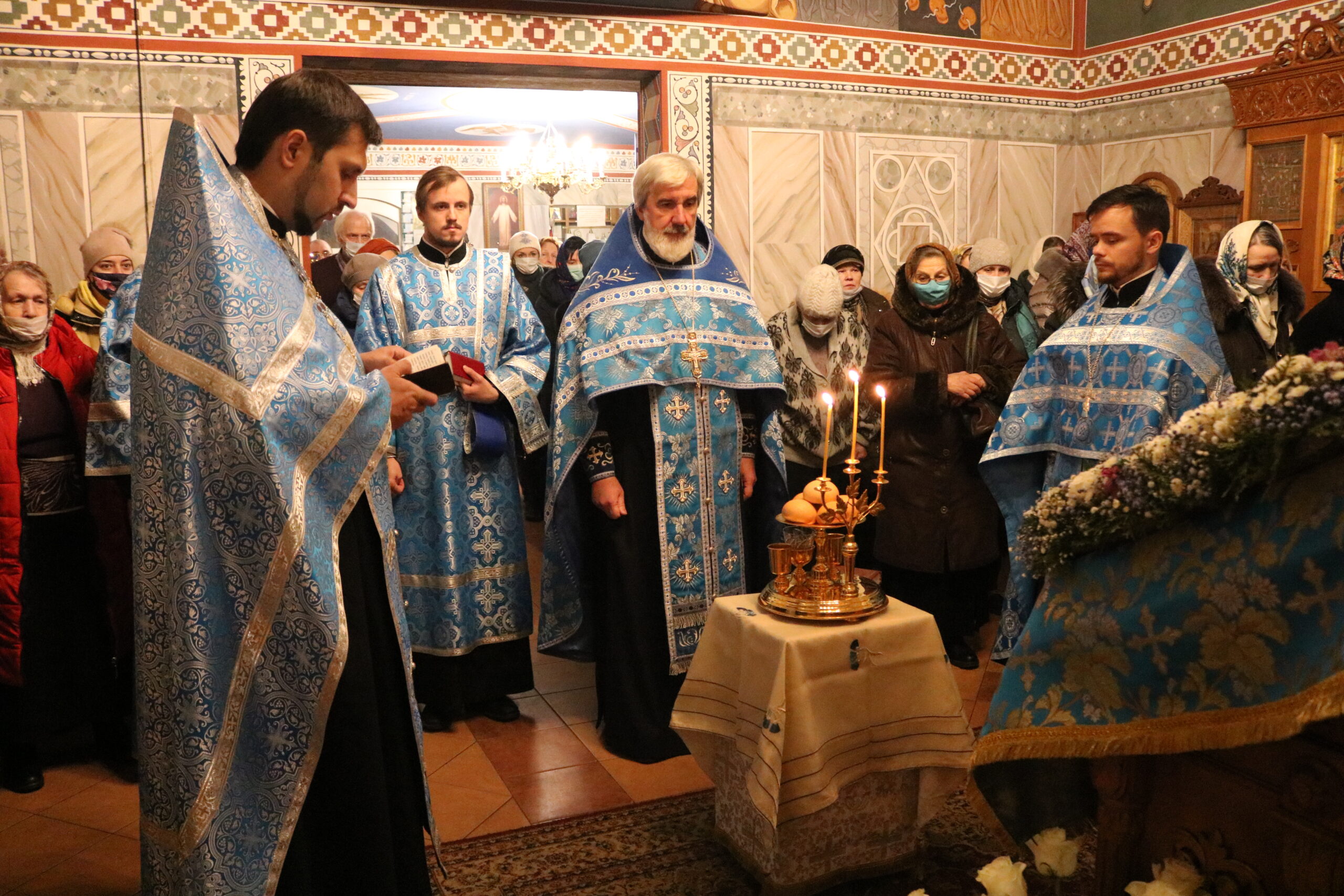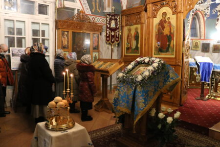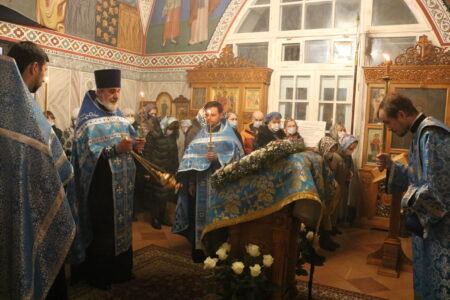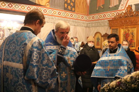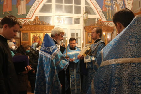Накануне праздника Введения во храм Пресвятой Владычицы нашей Богородицы и Приснодевы Марии Всенощное бдение в храме святого праведного Иоанна Кронштадтского совершил настоятель протоиерей Михаил Подолей в сослужении клира.