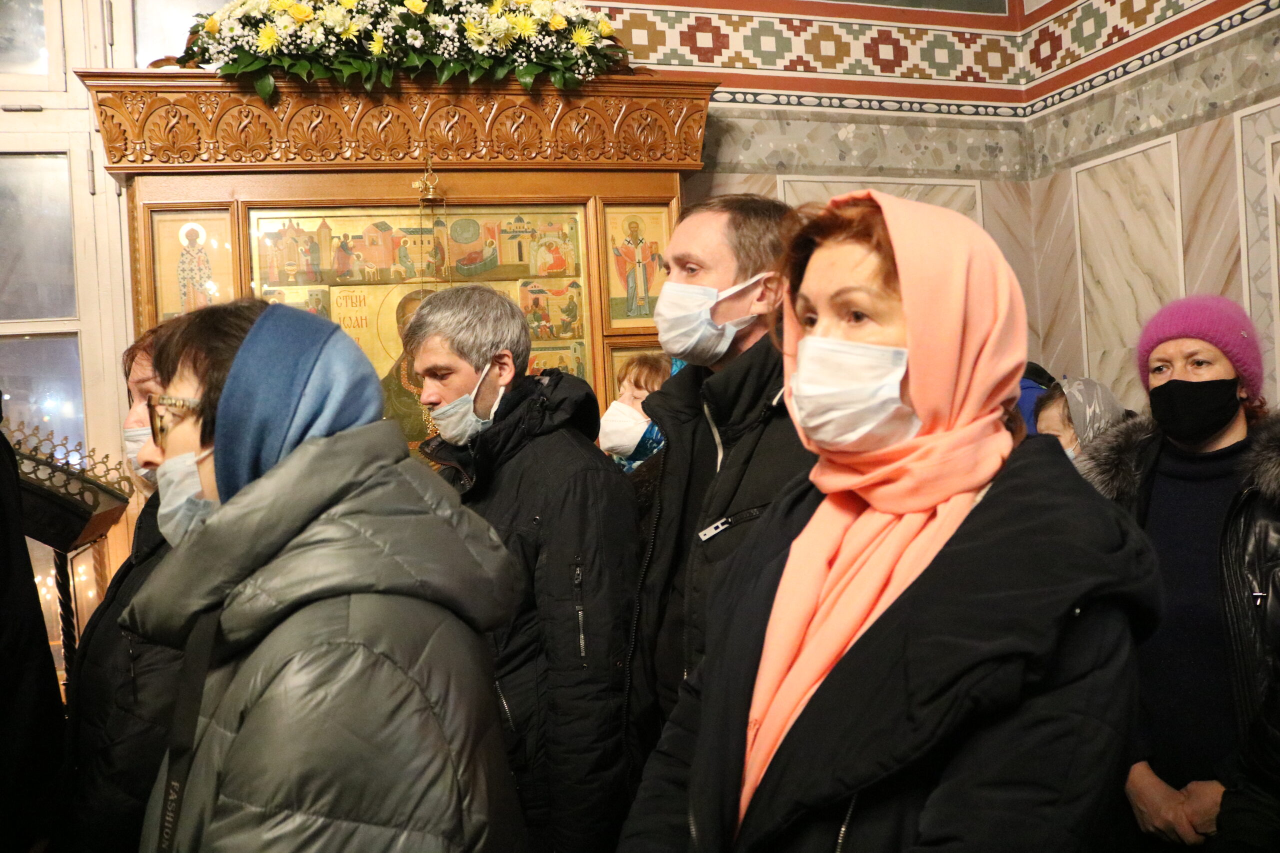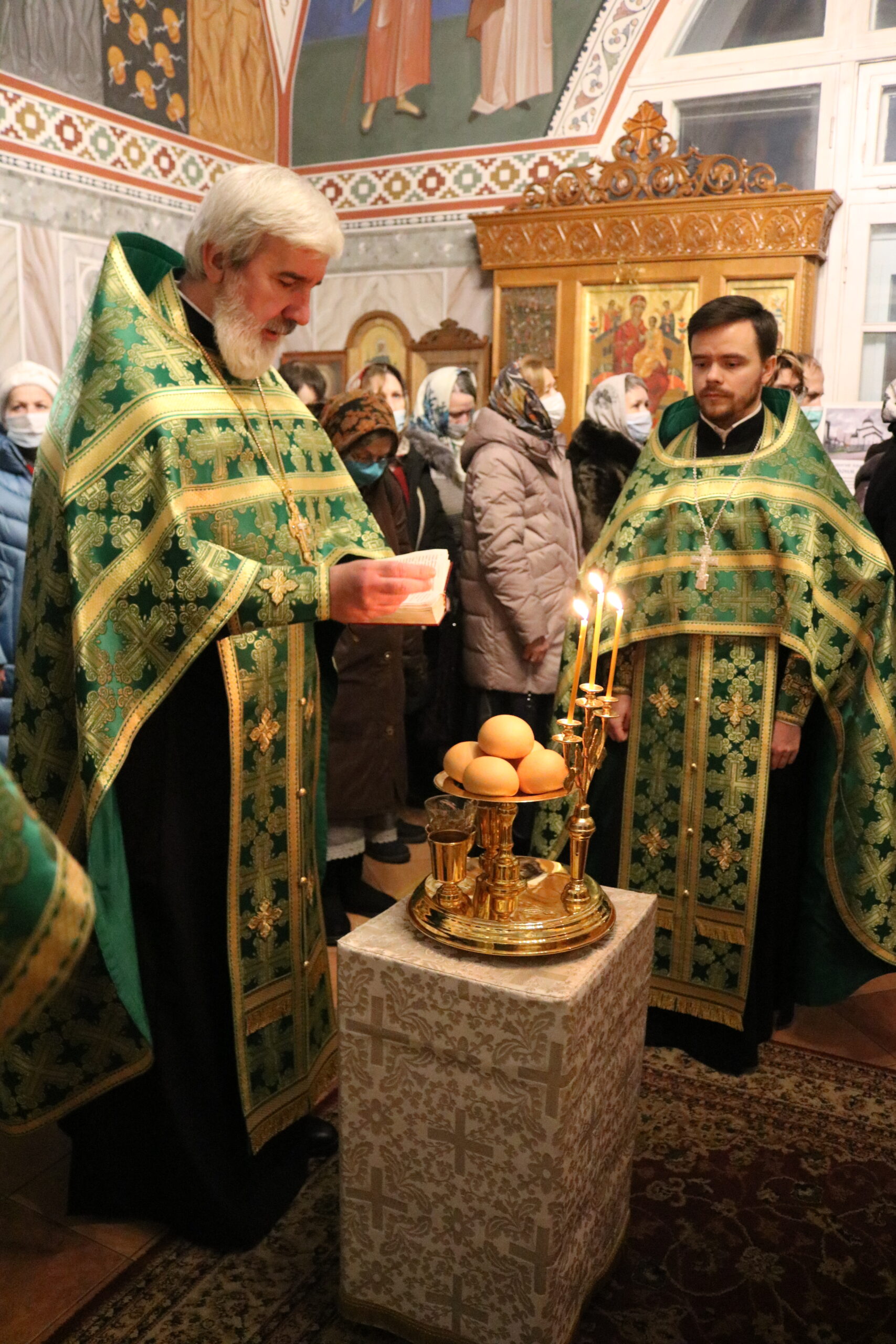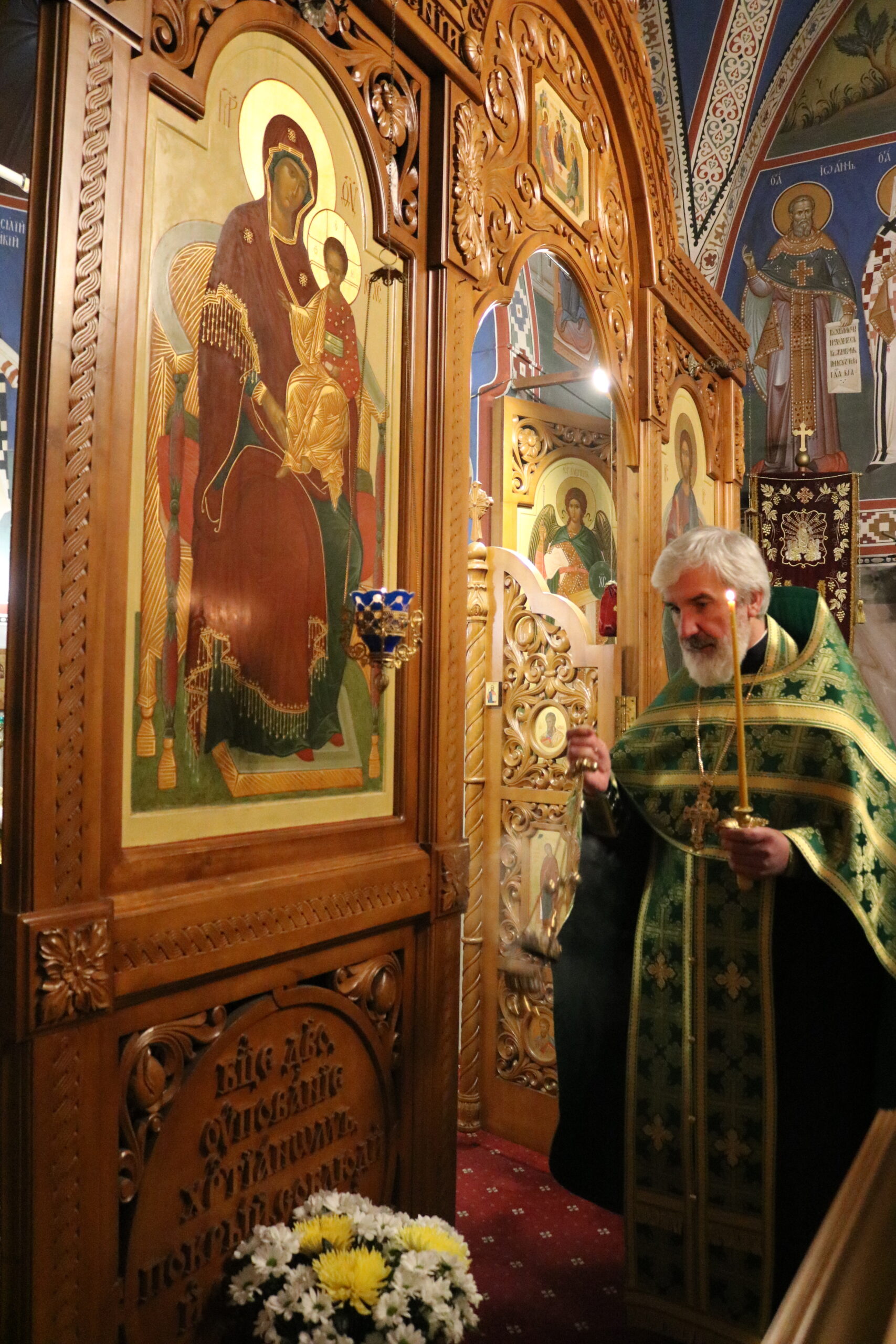Праздничную Литургию и Всенощное бдение накануне вечером совершил настоятель храма святого праведного Иоанна Кронштадтского на Кронштадтской площади протоиерей Михаил Подолей в сослужении клира.