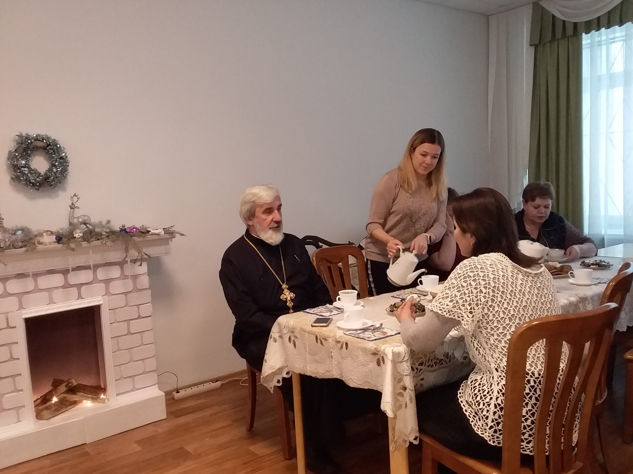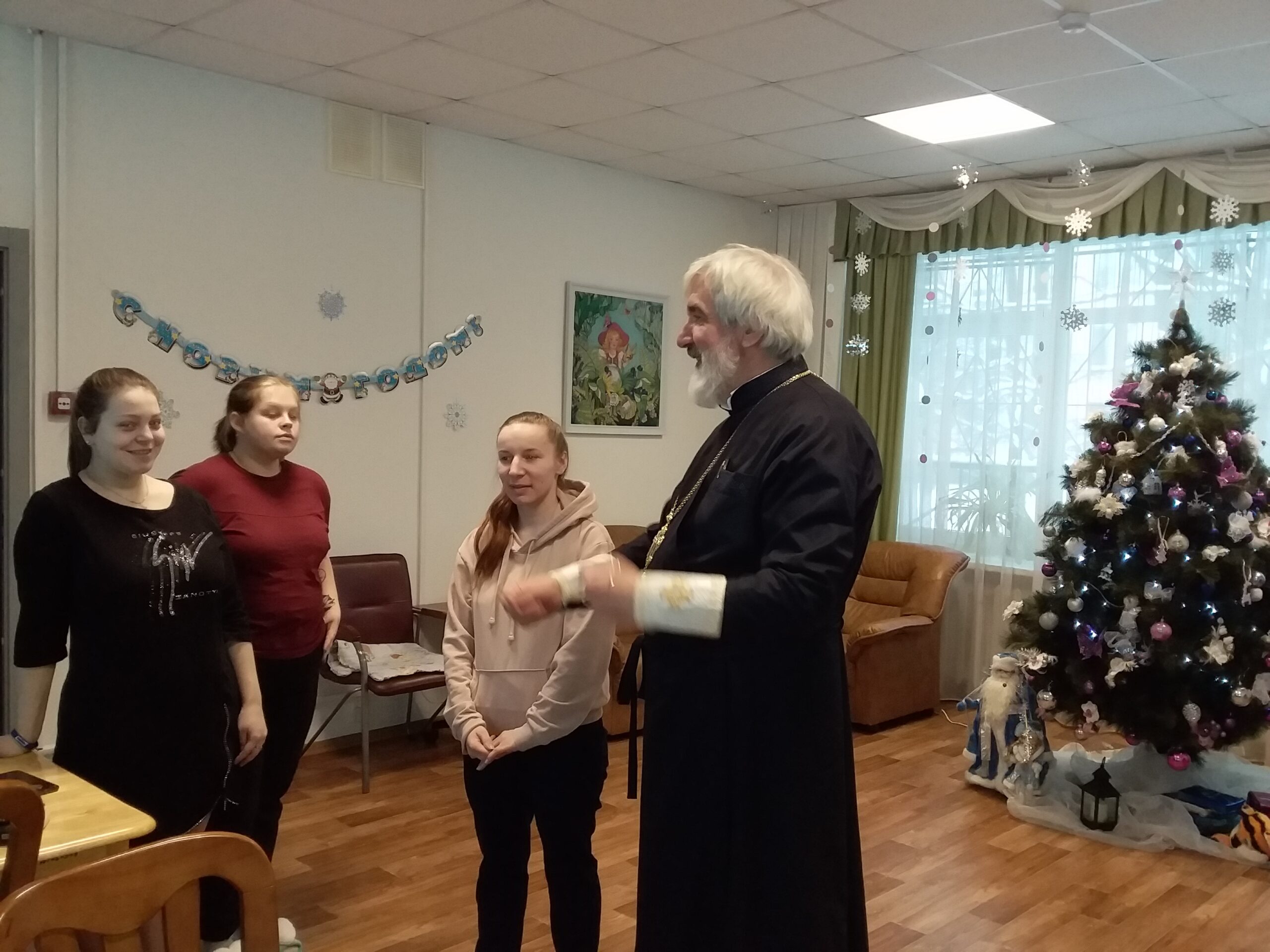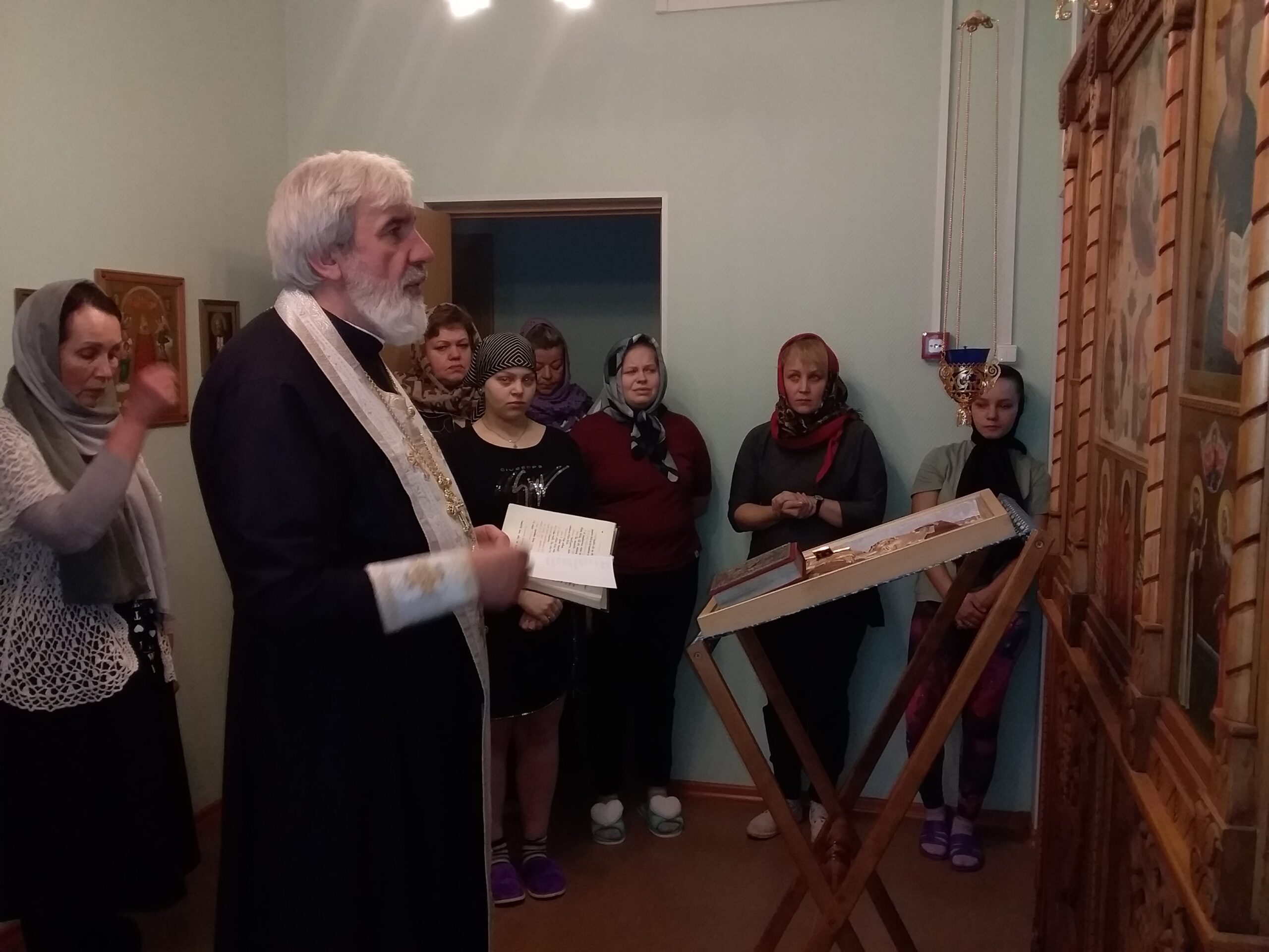 В часовне в честь Рождества Христова был совершен молебен. На молебне присутствовала директор центра – Гречишникова Марина Анатольевна, также сотрудники центра и молодые мамы. После молебна состоялась теплая беседа с отцом Михаилом, который вот уже более 15 лет окормляет данный кризисный центр.