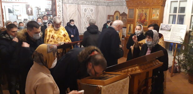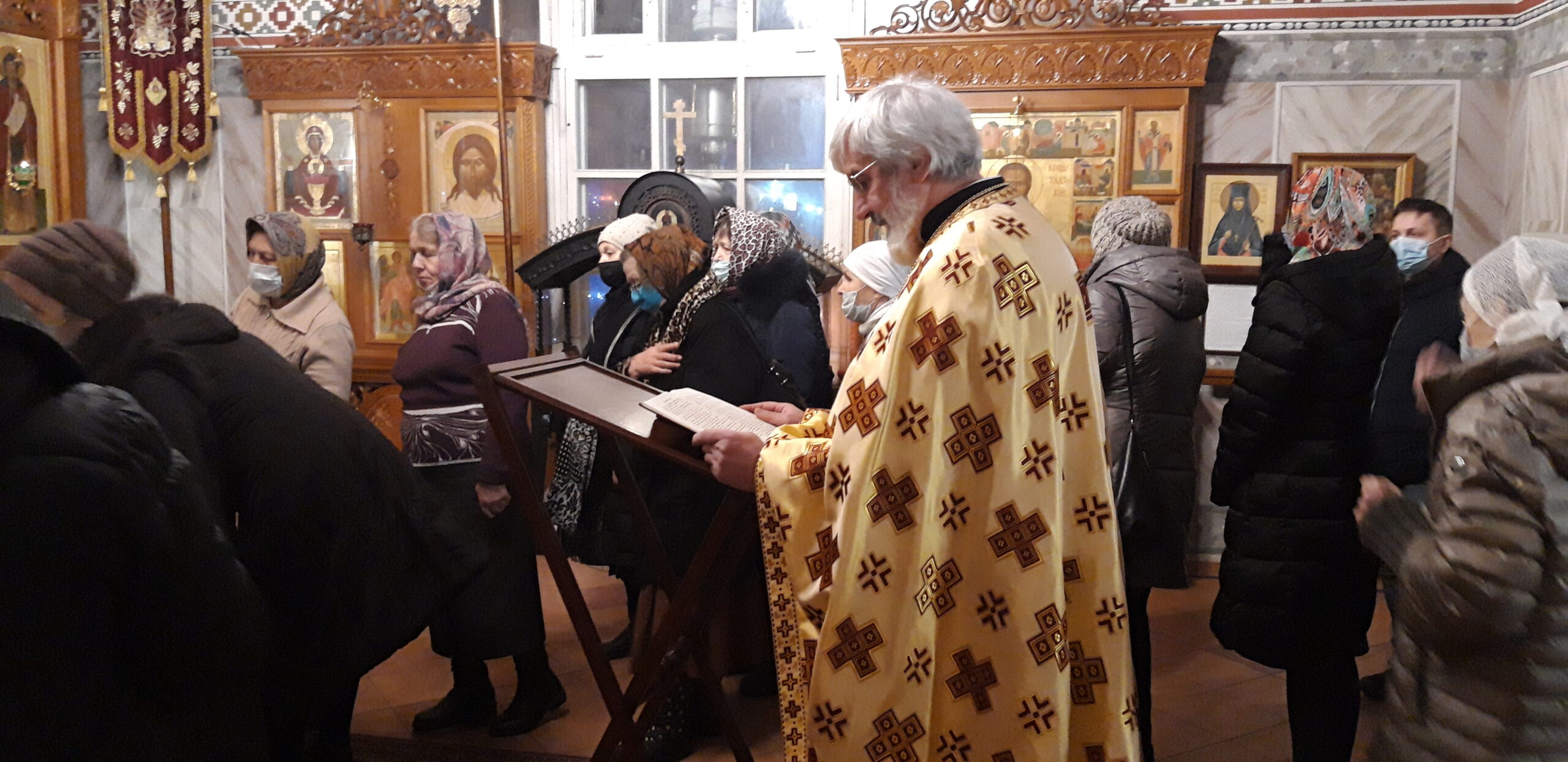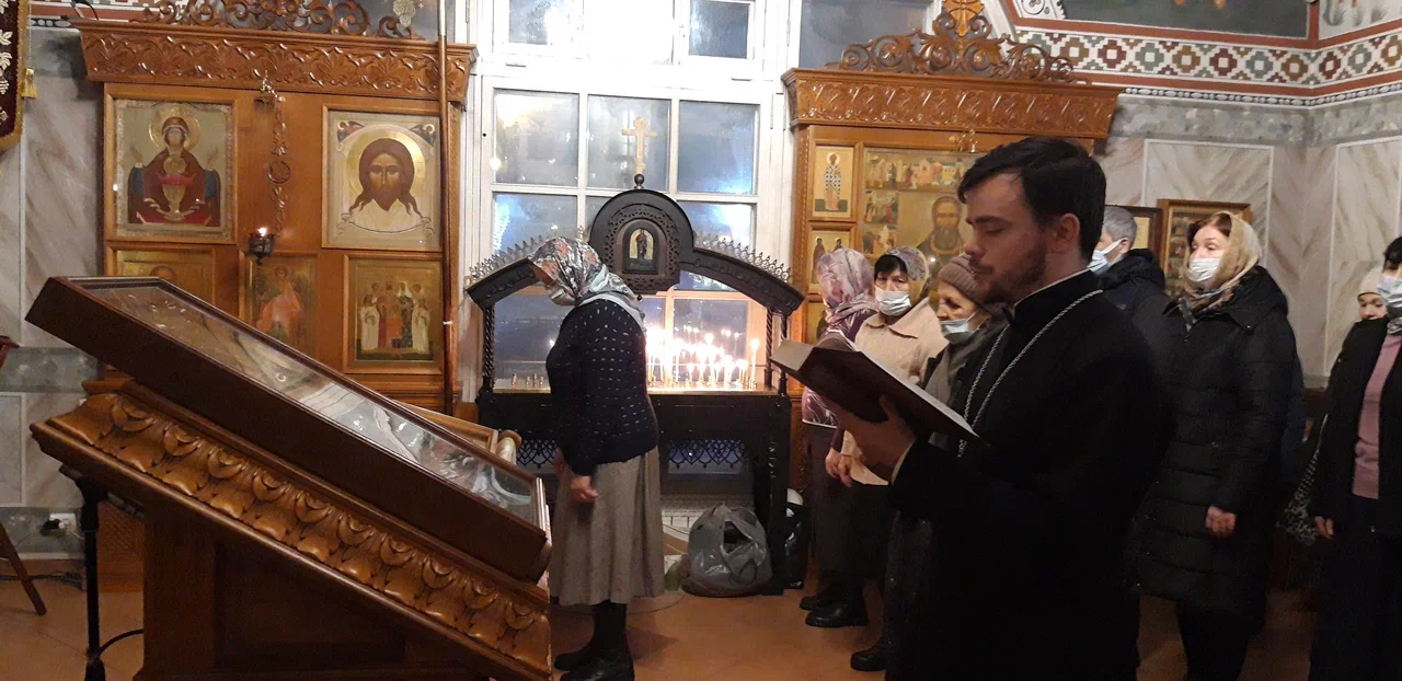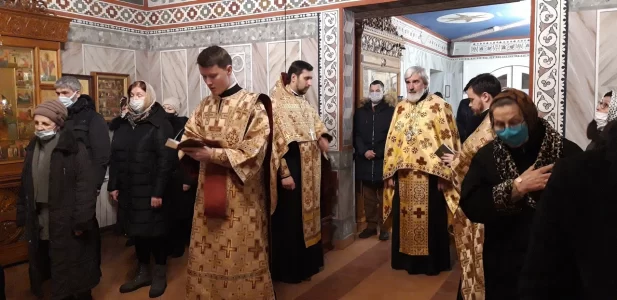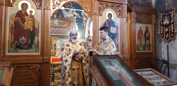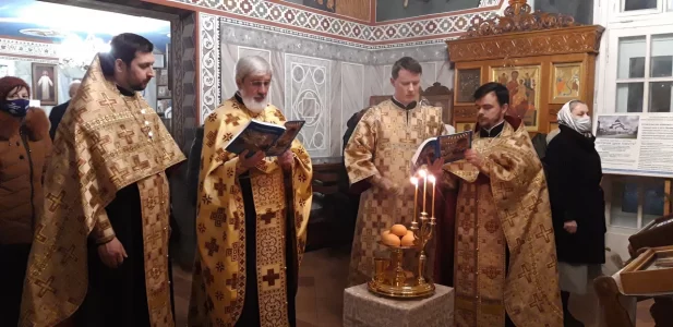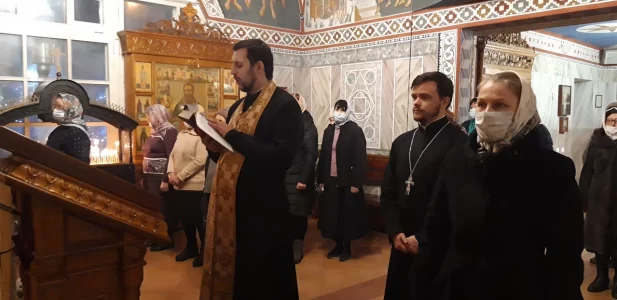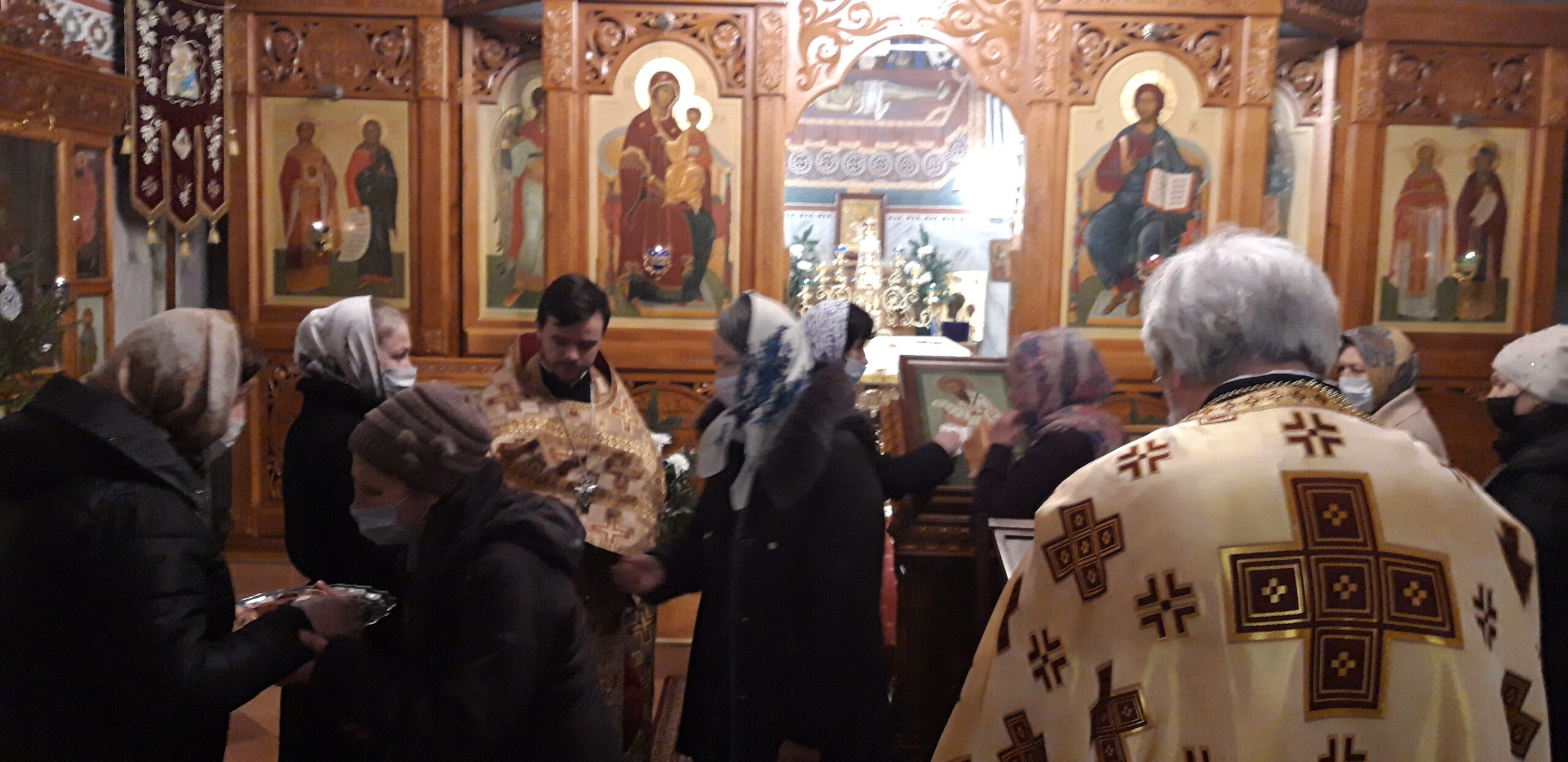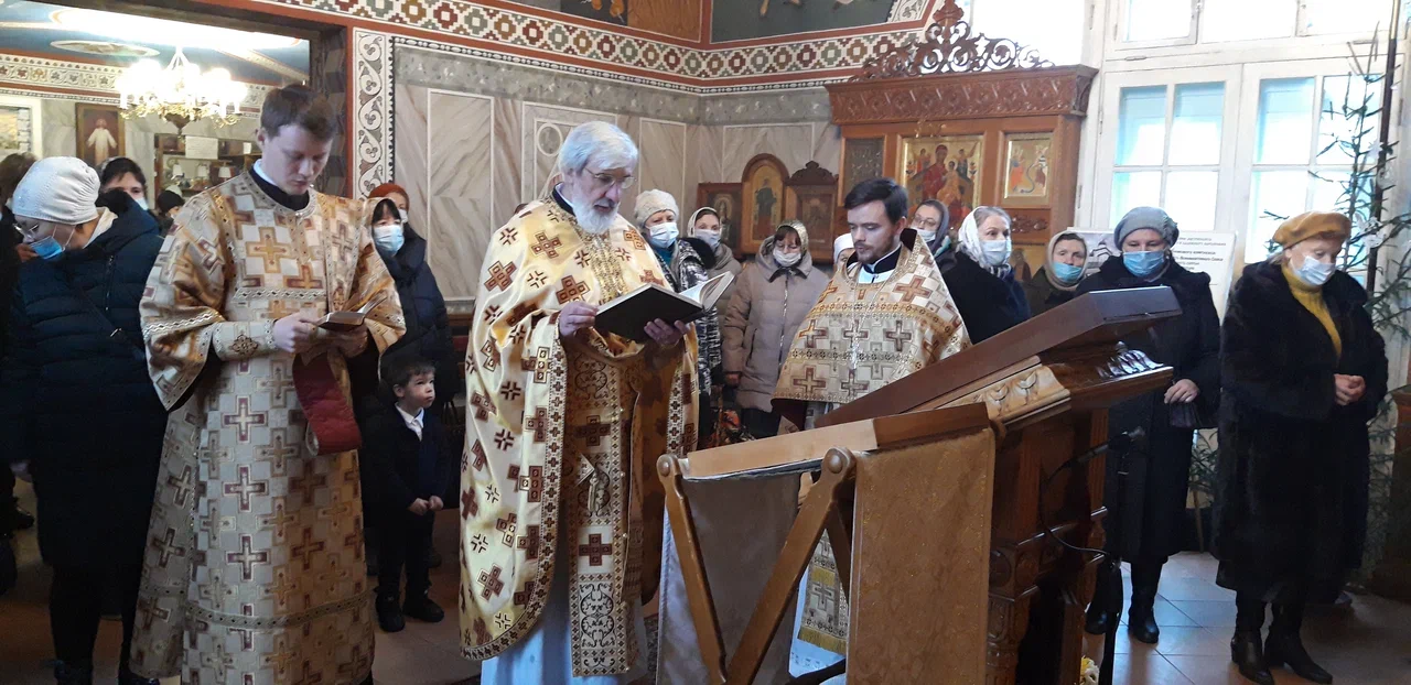 Божественную литургию в этот день, а также Всенощное бдение накануне вечером в храме святого праведного Иоанна Кронштадтского на Кронштадтской площади совершил настоятель храма протоиерей Михаил Подолей в сослужении клира.