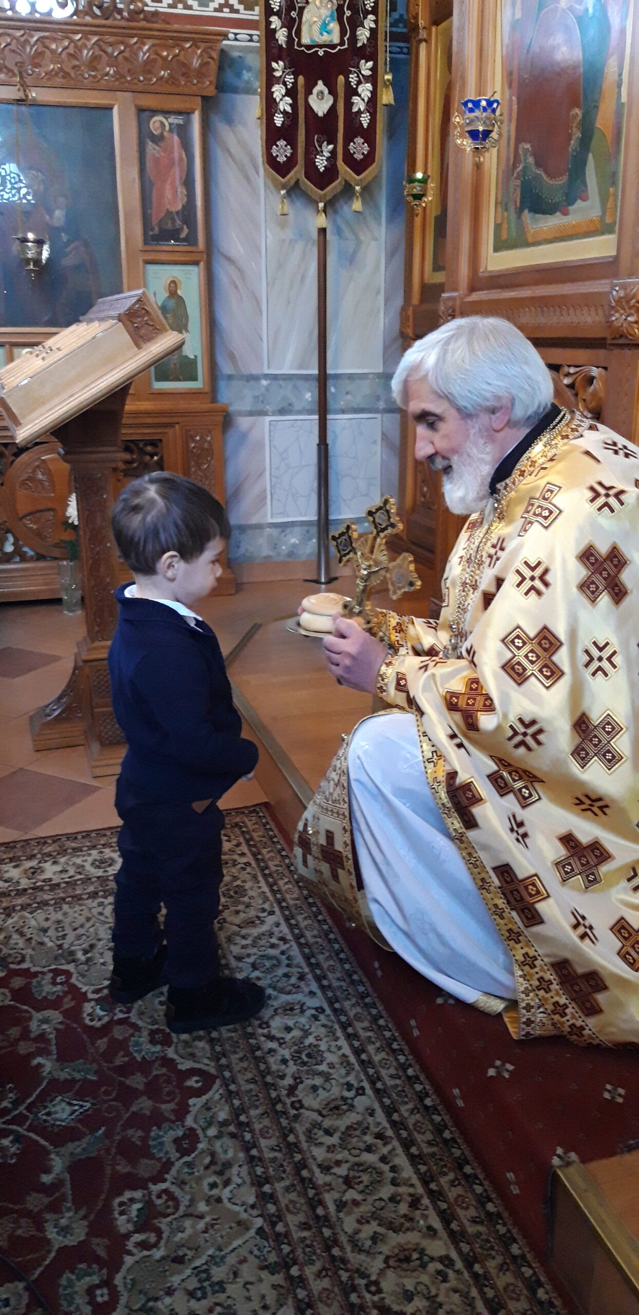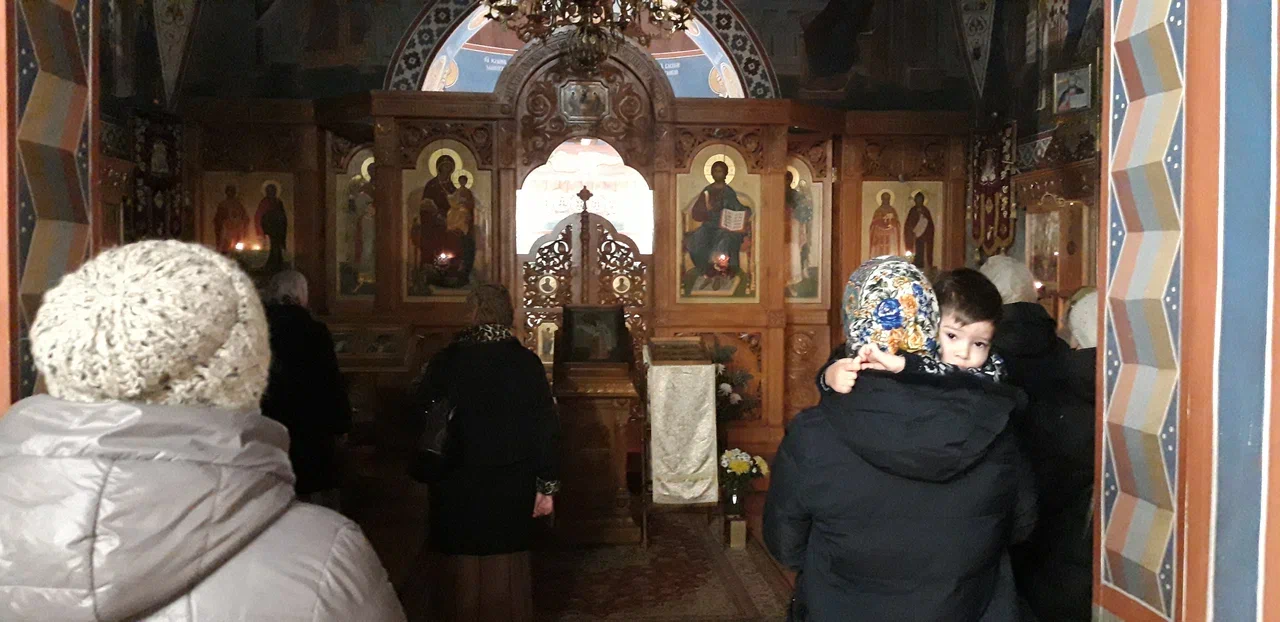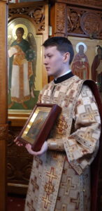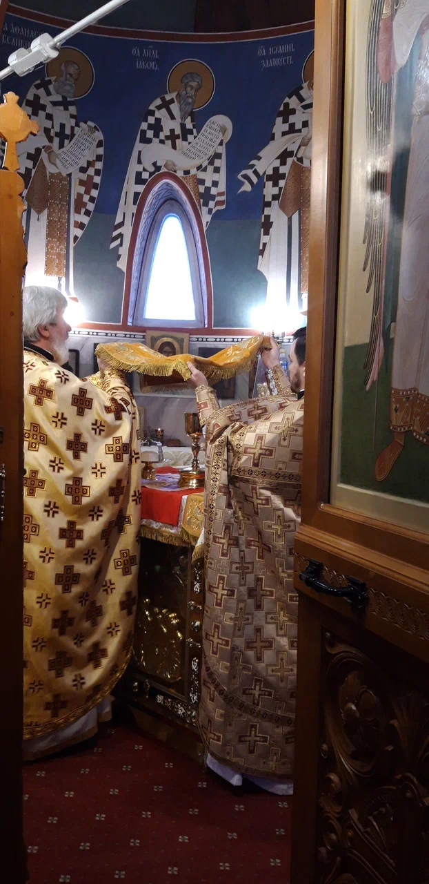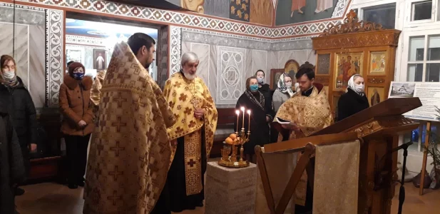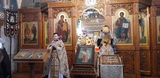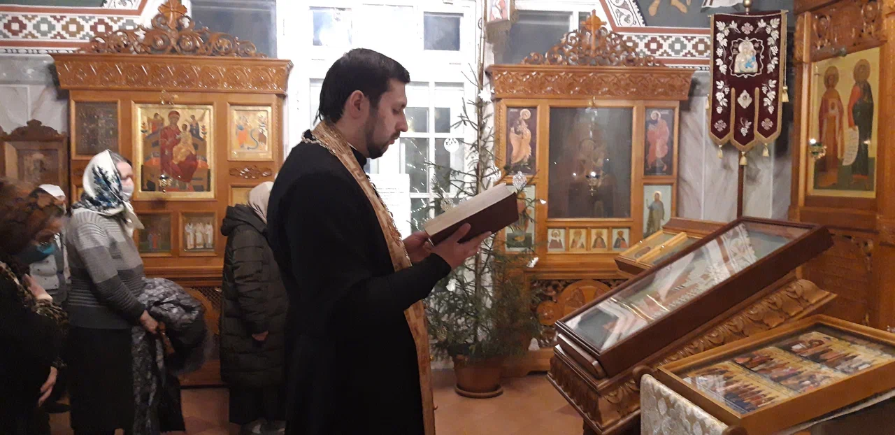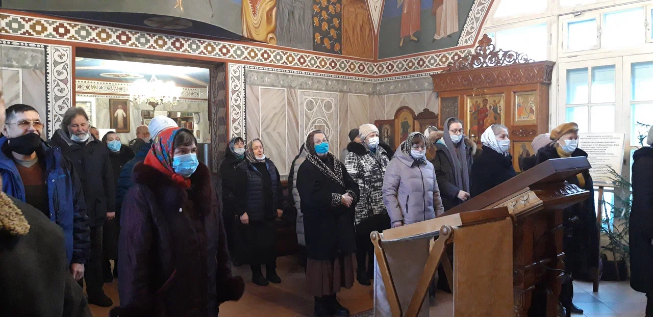 Божественную литургию в этот день, а также Всенощное бдение накануне вечером в храме святого праведного Иоанна Кронштадтского на Кронштадтской площади совершил настоятель храма протоиерей Михаил Подолей в сослужении клира.