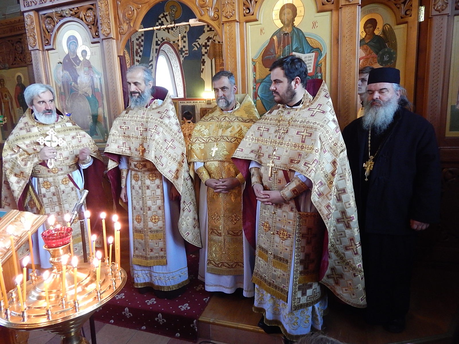 Сегодня, дорогие братья и сестры, большая радость для нас: необычное богослужение, потому что у нас гости из Сербской Православной Церкви. Вчера они молились в Троице-Сергиевой Лавре». Обращаясь к гостям, о. Михаил поблагодарил их за то, что в напряженном графике посещения святынь Санкт-Петербургской епархии они нашли время помолиться в нашем маленьком скромном храме. Он сказал: «Много лет мы уже знакомы с духовенством Сербской церкви, с ее архиереем – Преосвященным Иоанникием. Для нас очень важно это общение и прежде всего общение молитвенное. И мы просим, чтобы в ваших теплых краях, теплых не только климатически, но и духовно, вы вспоминали нас в ваших молитвах. Пусть всегда между нами будет тепло взаимной молитвы, всегда между нами пребудет Бог и любовь между двумя братскими народами».