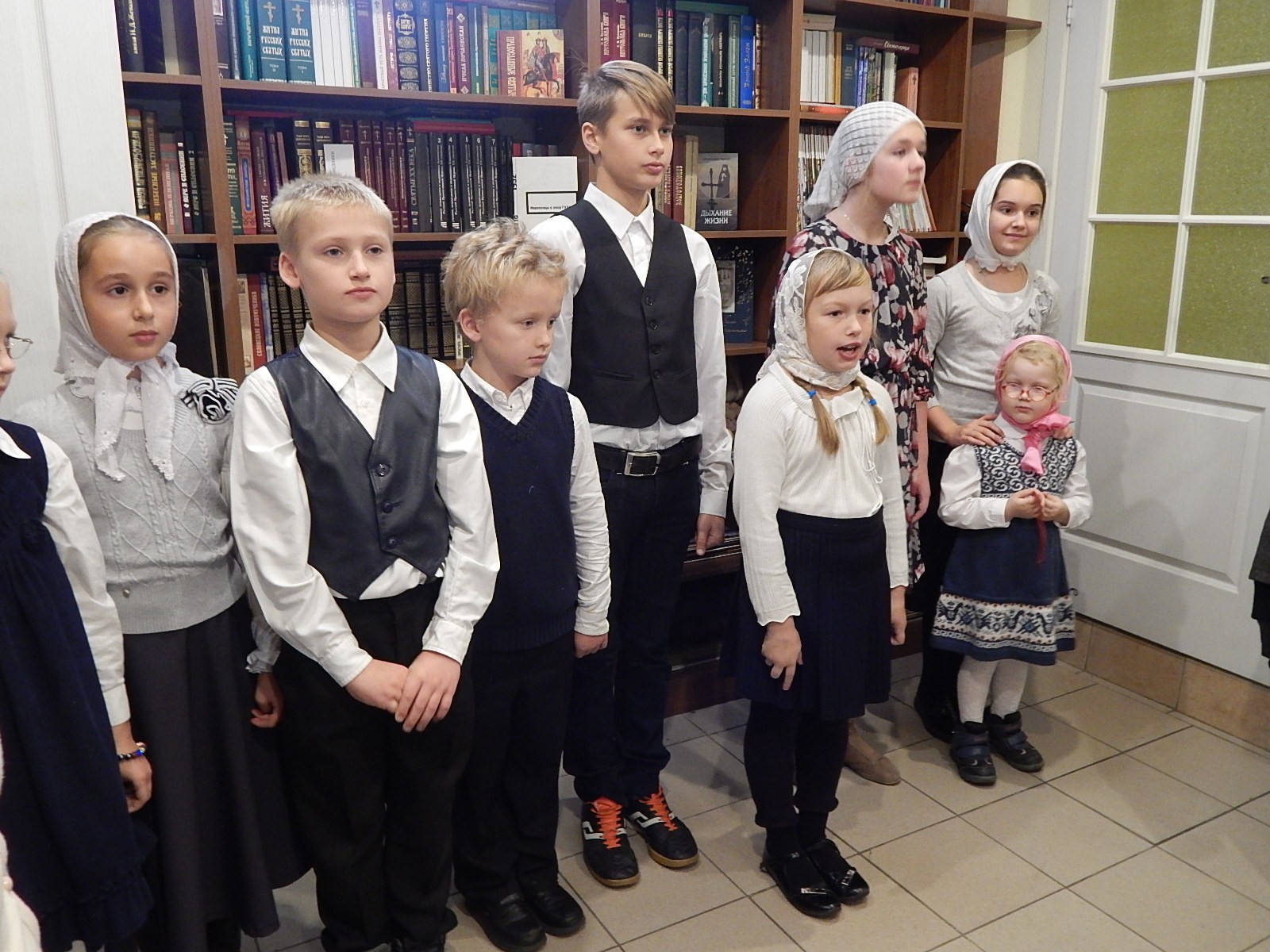 Общение с гостями было продолжено после богослужения. В помещении приходской библиотеки их поздравили учащиеся нашей Воскресной школы. Они прочли поэтическую композицию, посвященную нашему городу и вручили гостям памятные подарки.