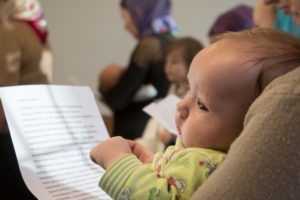Просторная светлая комната, где сотрудники приюта приготовили розовую ванночку с теплой водой, соединяет «Маленькую маму» с другим отделением – кризисным центром помощи женщинам. Там находятся взрослые подопечные, пострадавшие от домашнего насилия или оказавшиеся в тяжелой жизненной ситуации. На этот раз на крещение со стороны «Маленькой мамы» пришла 17-летняя Маша с двухмесячным Артемием, а из кризисного центра – Машина мама с младшей дочерью Варварой.