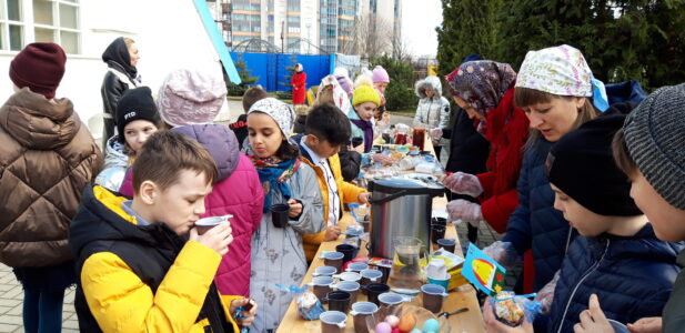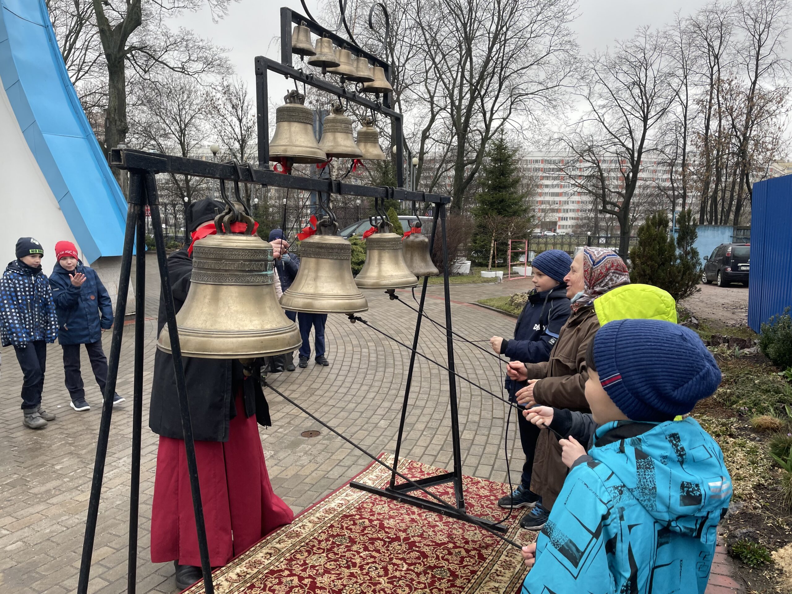 У детей была возможность самим позвонить в колокола, возвещая миру пасхальную радость. В завершении праздника учащихся угостили пасхальными куличами и раздали подарки.