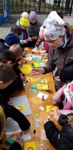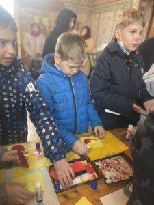 Учителя воскресной школы «София» Хваткова Эльвира Рифкатовна и Харченко Елена Николаевна провели мастер-класс по изготовлению Пасхальных открыток. На территории храма учащихся ждал еще один урок по изучению церковного колокольного звона, под руководством старшего звонаря собора Владимирской иконы Божией Матери Кайчука Владимира Степановича и звонаря храма святого праведного Иоанна Кронштадтского Колтеревой Татьяны Евгеньевны.