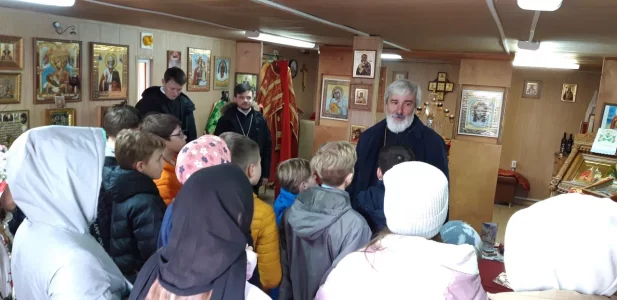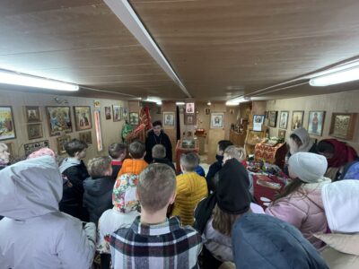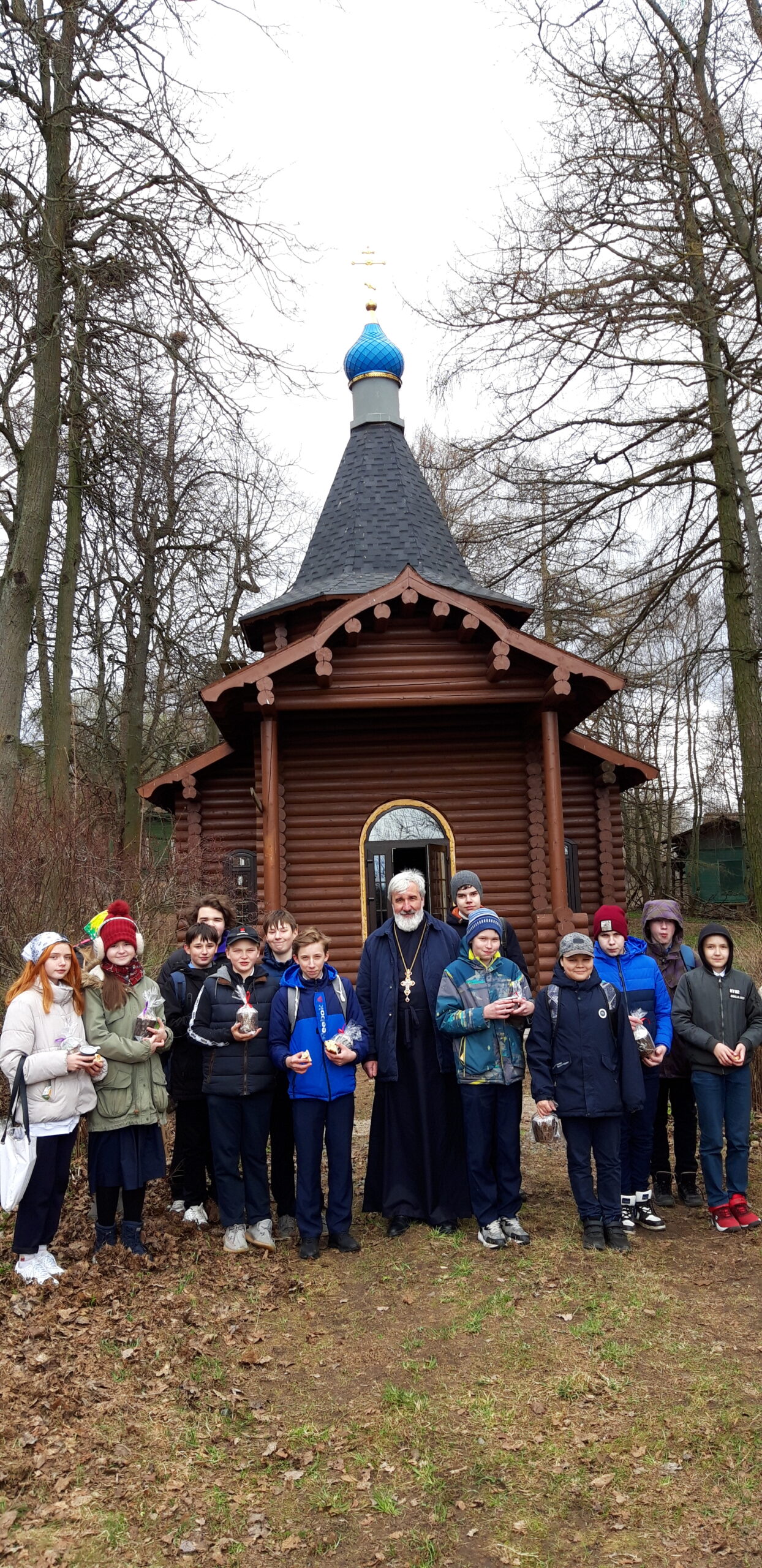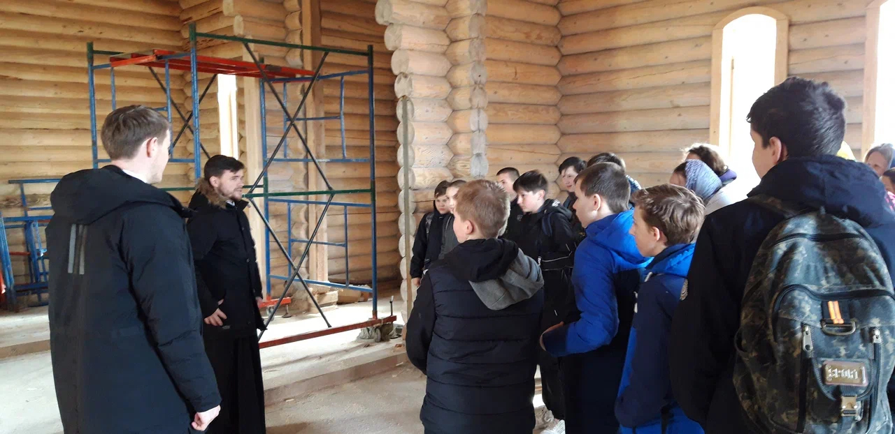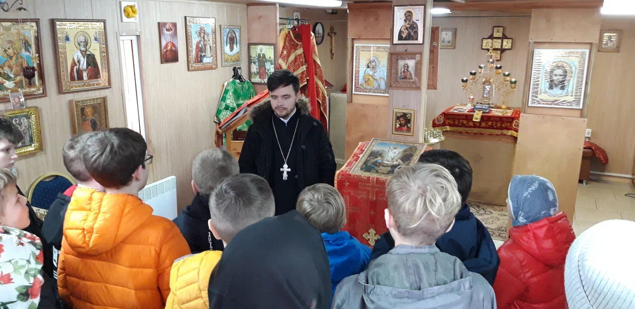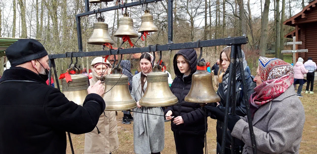 В своем приветственном слове отец Михаил рассказал о празднике Светлой Пасхи, его значении для всех православных христиан, о том, что Пасха имеет центральное место в жизни всего человечества, потому что через Воскресение Христово нам дарована возможность вечной жизни. Рассказал о разрушенной церкви в честь святой равноапостольной княгини Ольги, о том, что на сегодняшний день ведутся работы по созданию нового храма в честь Святой Троицы и учащиеся с интересом ознакомились с его строительством. Также было отмечено, что на данном месте не прекращаются богослужения и в настоящее время.